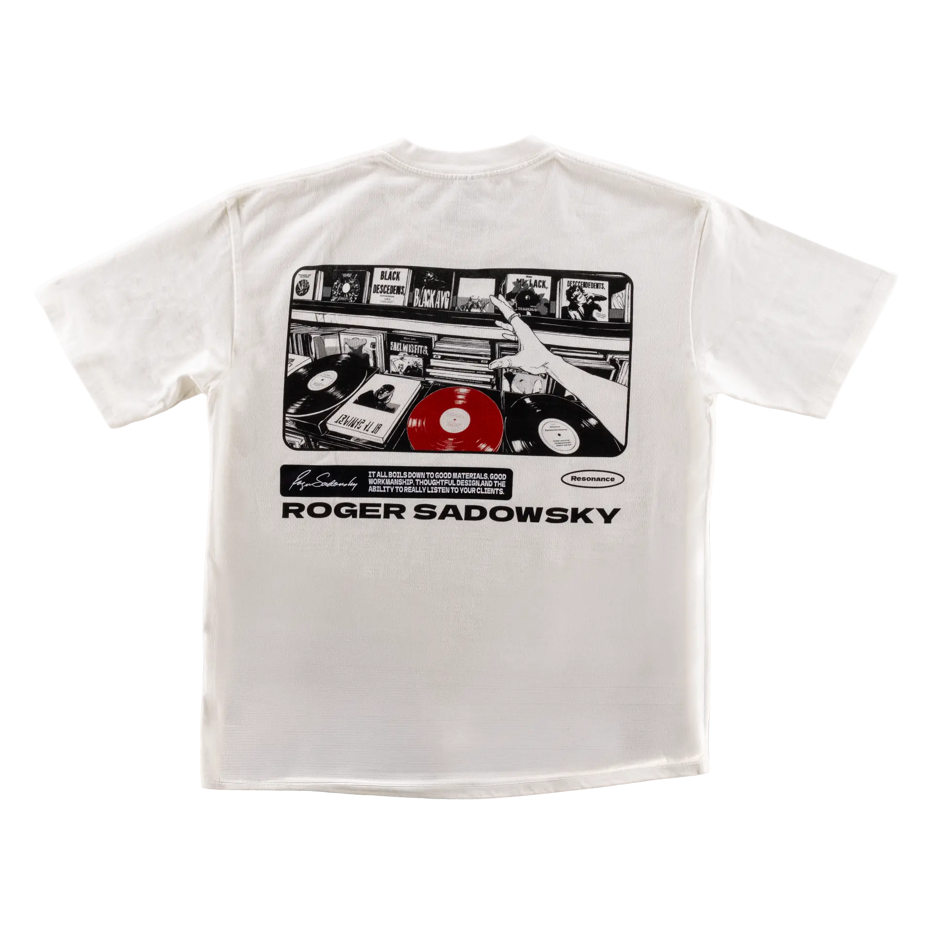Sadowsky - Black Printed Logo T-Shirt, White - Size S