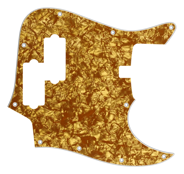 A new pickguard is one of the easiest ways to customize the look of your Sadowsky bass! This genuine Sadowsky Gold Pearl 4-ply (gold pearl/black/white/black) pickguard is a direct replacement for your right-hand 5-string Sadowsky MetroExpress 21-Fret Hybrid P/J or MetroLine 21-Fret Vintage P/J bass manufactured in or after the year 2020.