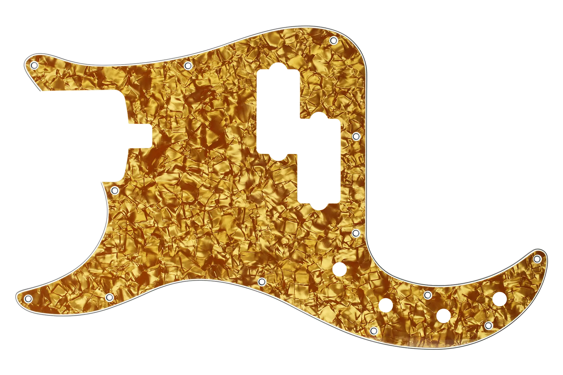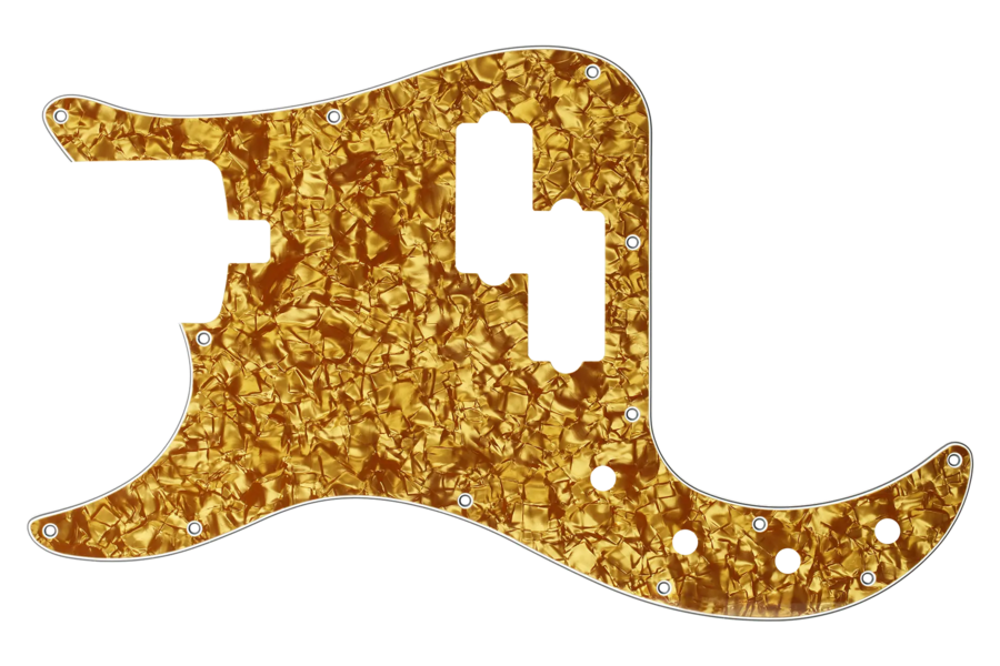 A new pickguard is one of the easiest ways to customize the look of your Sadowsky bass! This genuine Sadowsky Gold Pearl 4-ply (gold pearl/black/white/black) pickguard is a direct replacement for your left-hand 4-string Sadowsky MasterBuilt or MetroLine 21-Fret Hybrid P/J bass manufactured in or after the year 2020.