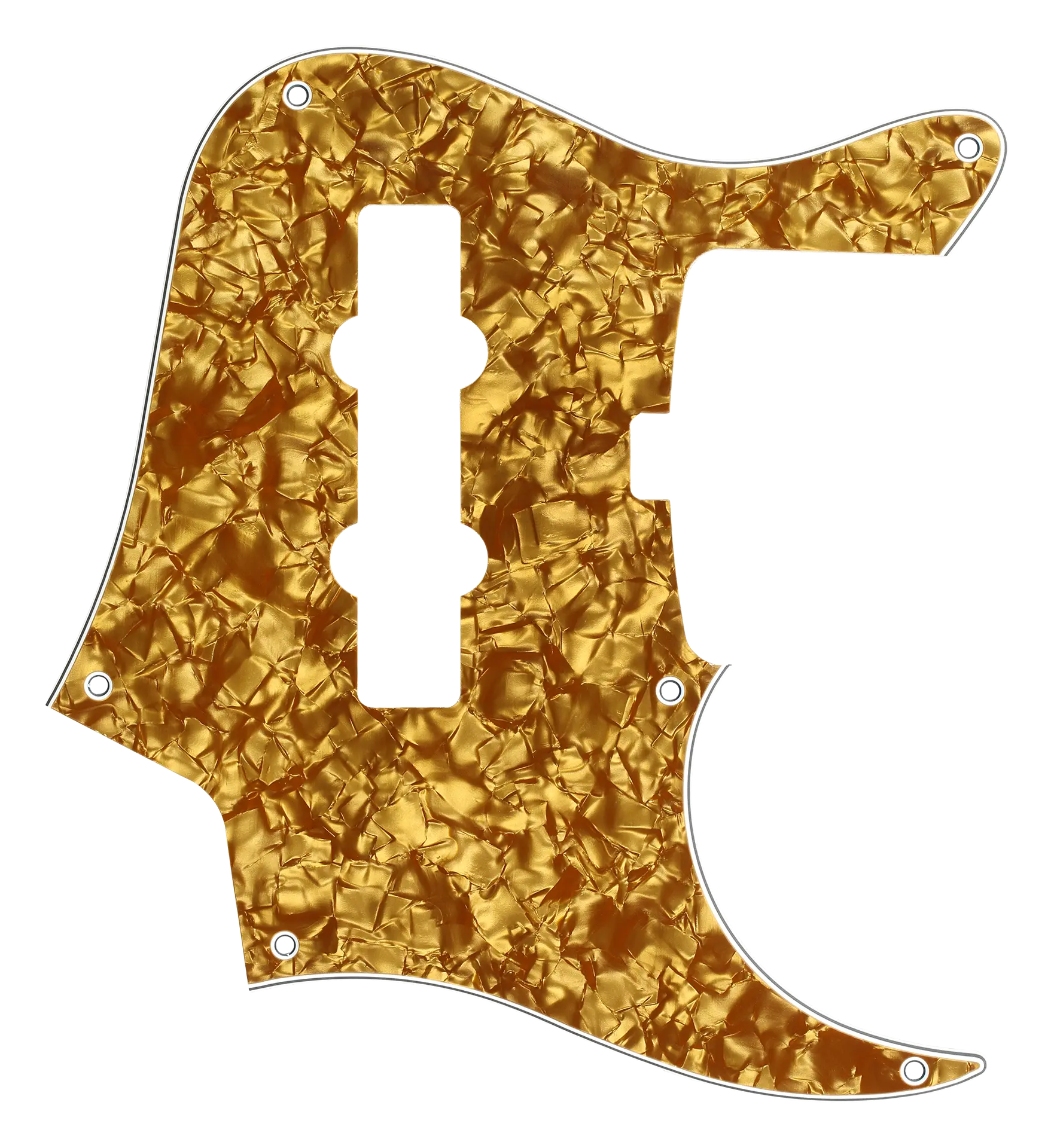 A new pickguard is one of the easiest ways to customize the look of your Sadowsky bass! This genuine Sadowsky Gold Pearl 4-ply (gold pearl/black/white/black) pickguard is a direct replacement for your right-hand 5-string Sadowsky MasterBuilt or MetroLine 24-Fret Vintage J/J Bass manufactured in or after the year 2020.