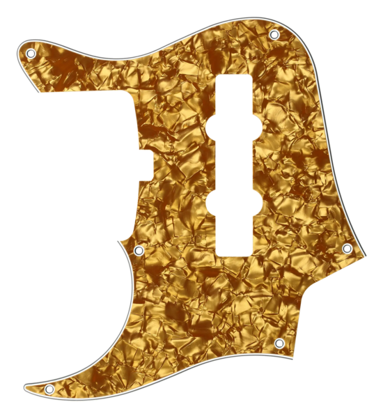 A new pickguard is one of the easiest ways to customize the look of your Sadowsky bass! This genuine Sadowsky Gold Pearl 4-ply (gold pearl/black/white/black) pickguard is a direct replacement for your left-hand 5-string Sadowsky MasterBuilt or MetroLine 24-Fret Vintage J/J Bass manufactured in or after the year 2020.