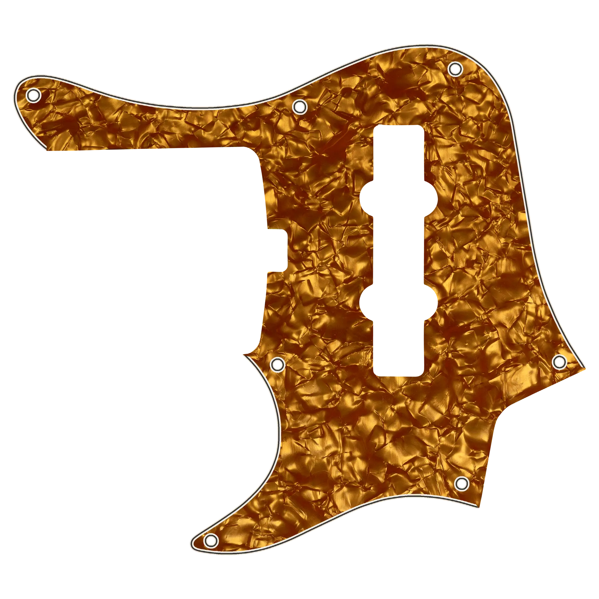 A new pickguard is one of the easiest ways to customize the look of your Sadowsky bass! This genuine Sadowsky Gold Pearl 4-ply (gold pearl/black/white/black) pickguard is a direct replacement for your left-hand 5-string Sadowsky MetroLine 24-Fret Vintage Single Cut J/J Bass manufactured in or after the year 2020.