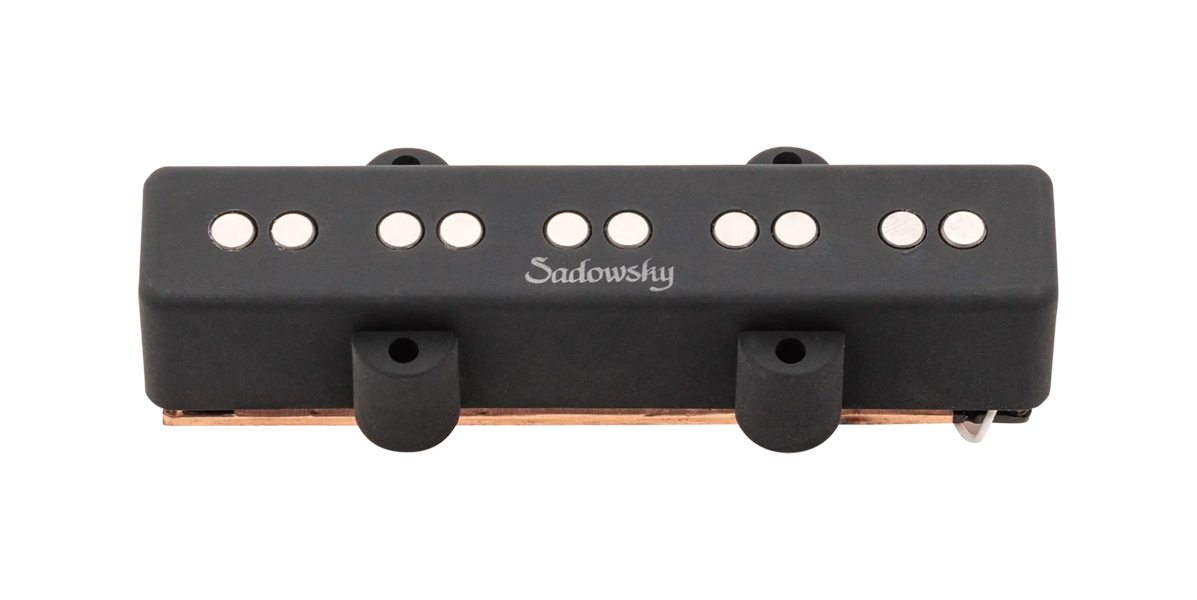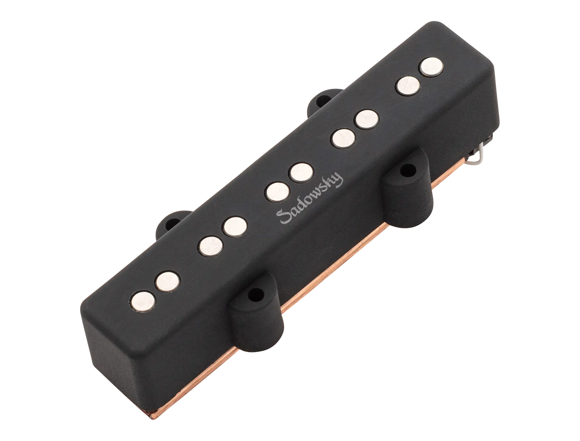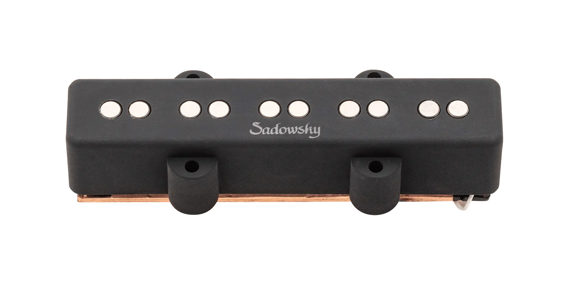 Sadowsky passive J-Style stacked coil, hum / noise-cancelling bass neck pickup for 5-string basses. Features include shielded 4-conductor cable, Alnico V magnet, open pole pieces and a black soft touch cover.