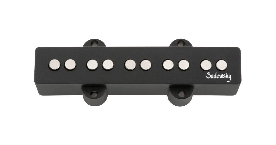 Sadowsky MetroExpress passive J-Style short stacked-coil bass pickup for 5-string basses. Features include a shielded 4-conductor cable, Alnico V magnets, open pole pieces and a black cover.