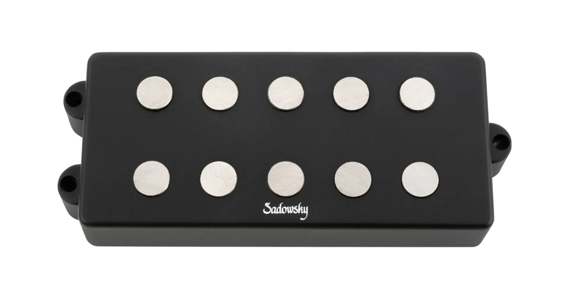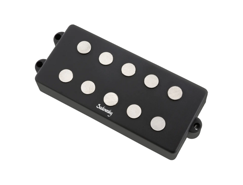 Sadowsky MetroExpress passive M-Style quad-coil Humbucker bass bridge pickup for 5-string basses. Features include a shielded 4-conductor cable, Alnico V magnets, open pole pieces and a black cover.