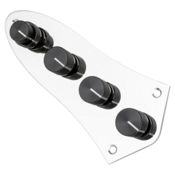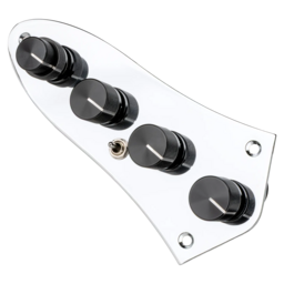 The Sadowsky Onboard Bass Preamp (4-Knob System) is a completely prewired system offering the same controls and the same legendary active preamp as all Sadowsky basses. This preamp is designed for installation on most basses with a 4-Knob Layout. On newer active electric basses with a 4-knob layout with a side jack and a battery compartment, usually no modification is required. On passive basses, the only required modification is to move the output jack to the side of the instrument and to make room for a battery. The controls are: Volume – Pan (Balance) – VTC (Vintage Tone Control) – Treble / Bass – Mid Boost switch. The treble and bass controls are boost only - flat response is with the controls at their complete counterclockwise position. The preamp also features a 500 Hz mid boost that can be switched on/off with a toggle switch. The VTC control is passive, the maximum setting is a flat EQ. The further you turn the control down, the more the high end in the signal will be attenuated. This system is not compatible with active pickups requiring anything else than a 250K or 500K volume or balance pot.