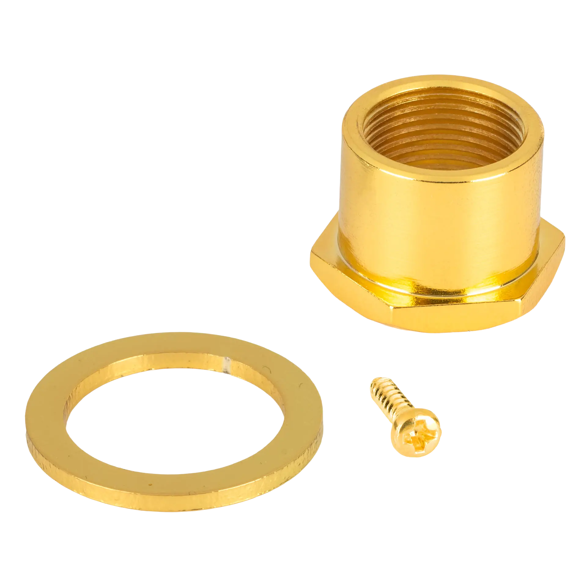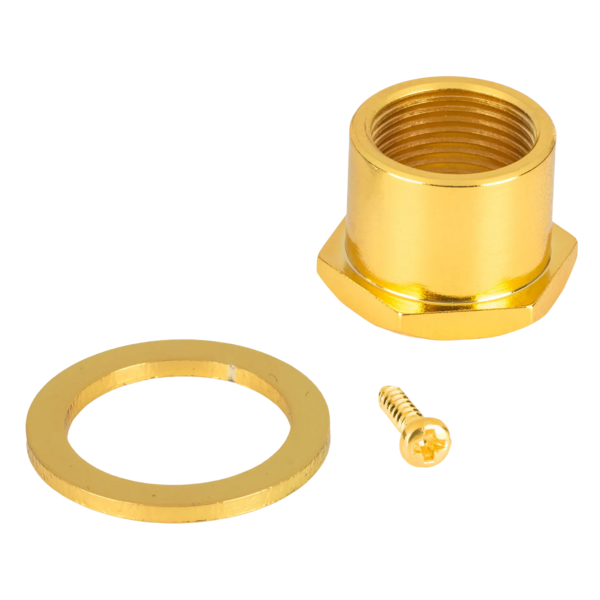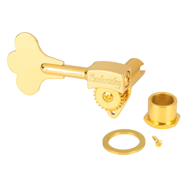 This single machine head comes with all necessary installation accessories: fixing screw, washer, and mounting sleeve, and features a gold finish to complement your bass hardware.