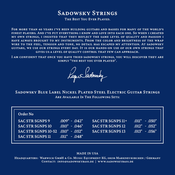 Sadowsky Blue Label Guitar String Set, Nickel Plated Steel - 009-042