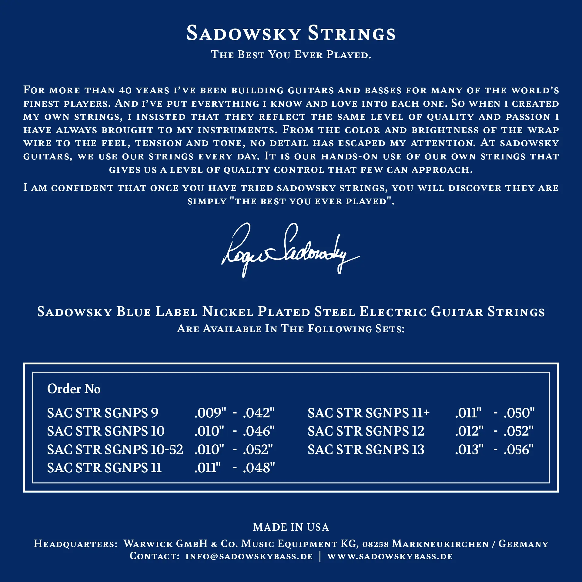 Sadowsky Blue Label Guitar String Set, Nickel Plated Steel - 010-046