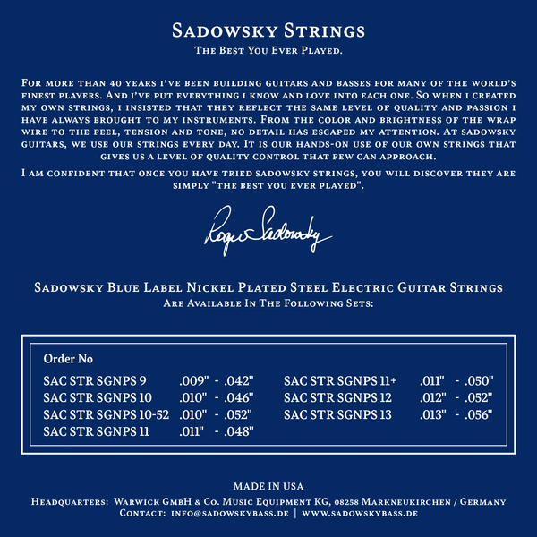 Sadowsky Blue Label Guitar String Set, Nickel Plated Steel - 010-052
