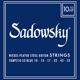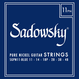 Sadowsky Blue Label .011 - .050 Nickel-Plated Steel strings for 6-string electric guitars. Thanks to the nickel-plating over a steel core, these strings offer a balanced tone that is bright but not too harsh, with tight mids and controlled, focused bass. They are perfect for rock, blues, pop and more.