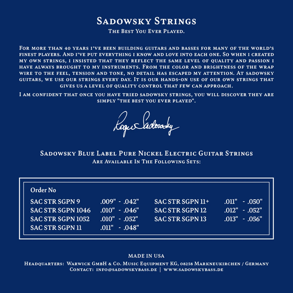 Sadowsky Blue Label Guitar String Set, Pure Nickel - 009-042