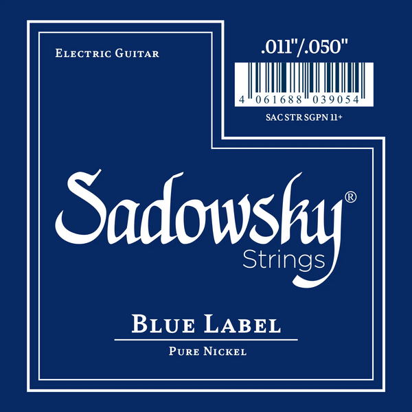 Sadowsky Blue Label .011 - .050 Pure Nickel strings for 6-string electric guitars. These strings offer a more vintage sound that is fuller, warmer and smoother, featuring rounded highs, stronger mids and mellow lows. They are perfect for classic rock, blues and classic jazz tones.