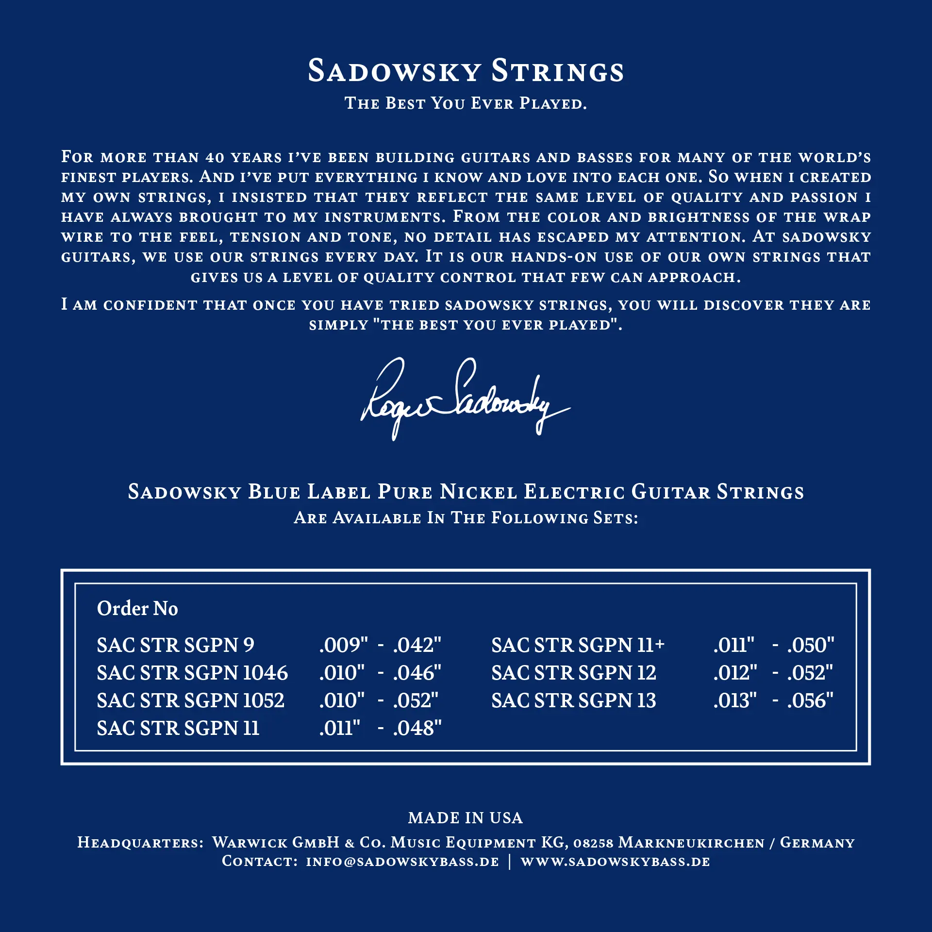 Sadowsky Blue Label Guitar String Set, Pure Nickel - 013-056