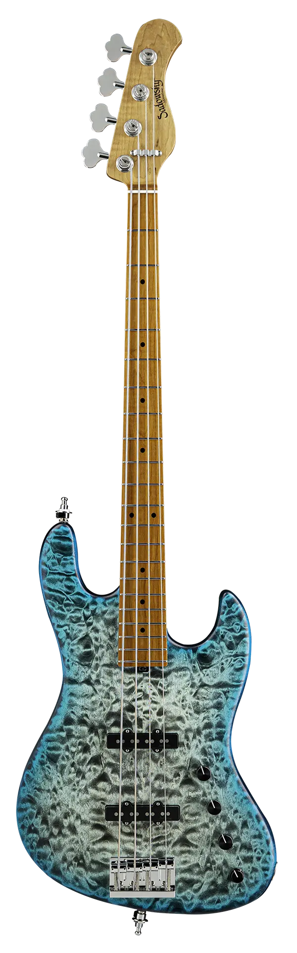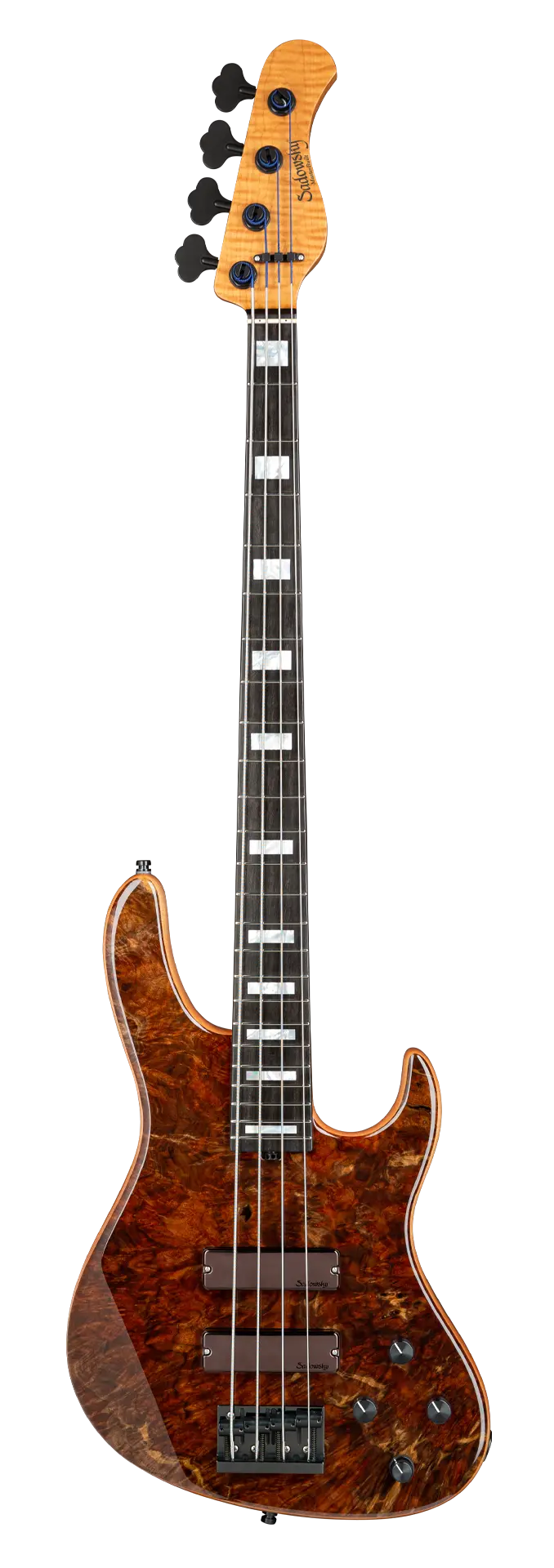 The Sadowsky MasterBuilt 20-Fret Ultra Vintage J/J Bass bass brings you a vintage bass with that famous modern Sadowsky sound! This 4-string version has a sleek, undersized chambered J-Style body made of American Swamp Ash and finished in a '59 Burst Transparent High Polish finish and has a Roasted American Maple neck with a Roasted American Maple fingerboard. Special features of this bass include two passive hum-cancelling Sadowsky J-Style pickups, active electronics with true bypass, treble and bass boost and Vintage Tone Control that give you that special Sadowsky tone: Never harsh or shrill sounding, with strong, powerful (but never muddy!) bass, mids that are present while not too aggressive, and a sweet and airy treble range. It also features light open gear Sadowsky tuners and a Sadowsky Quick String Release Bridge. Made exclusively in our workshop in Germany, this bass weighs never more than 8.4 lbs (3.8 kg). A great choice for bass players looking for a beautiful vintage bass that is also lightweight and has a modern bass sound.