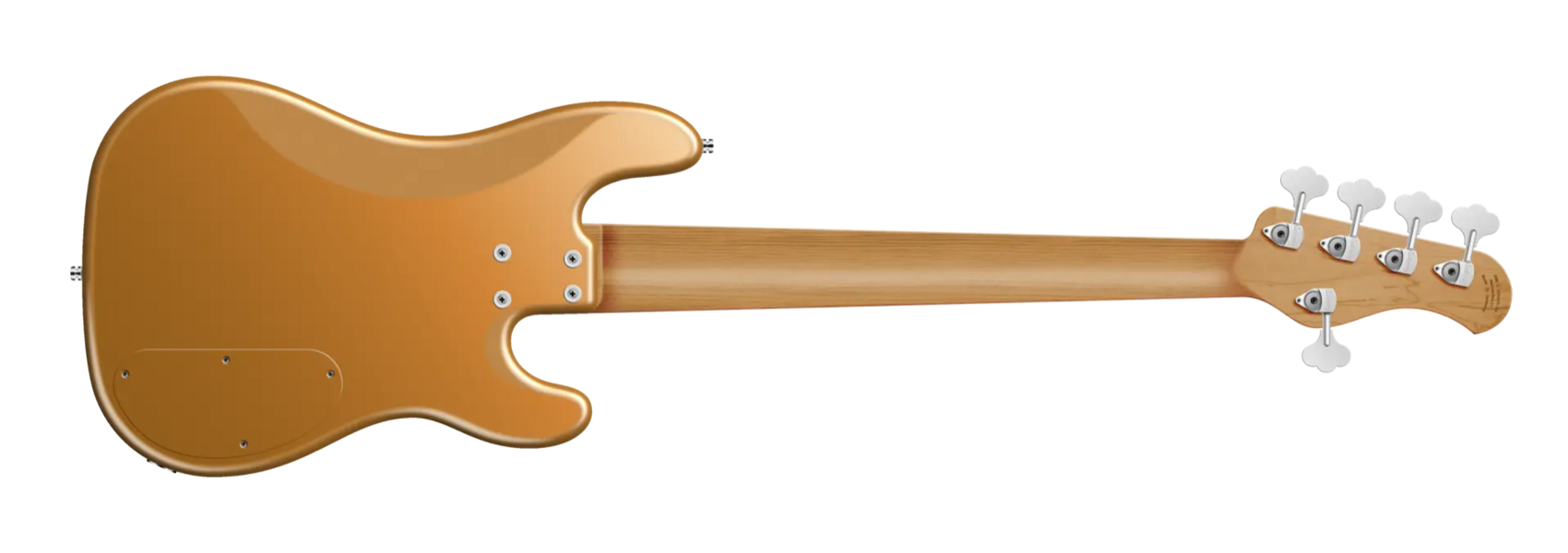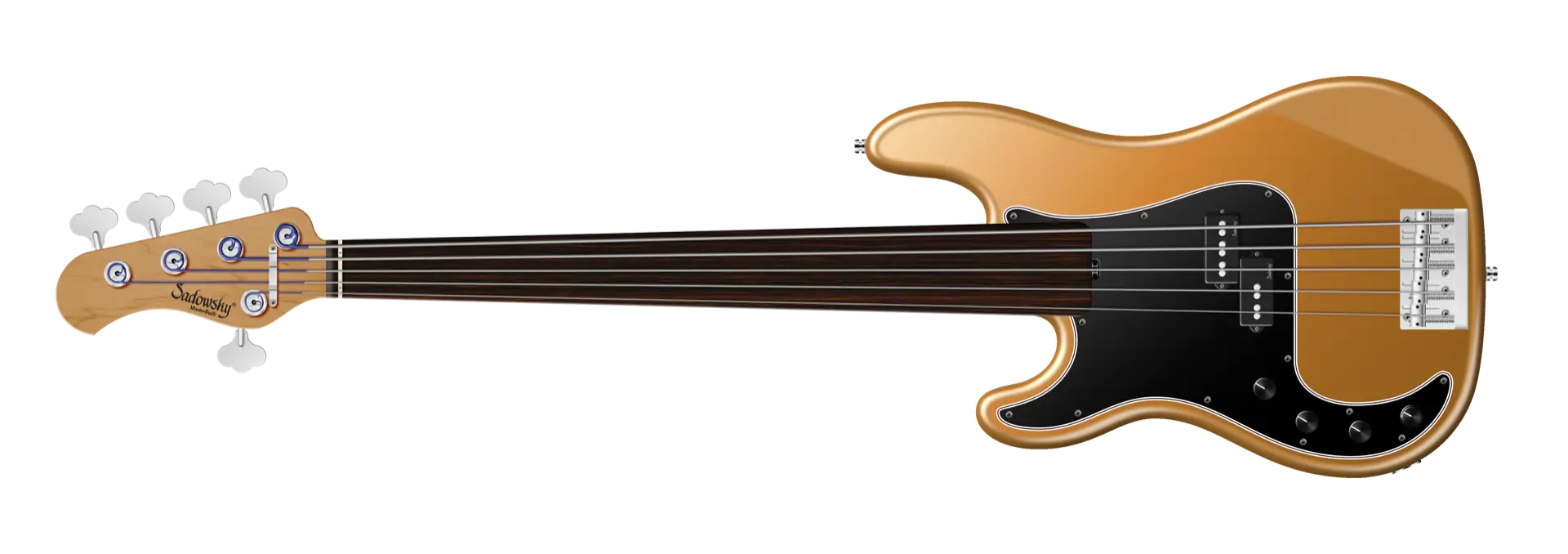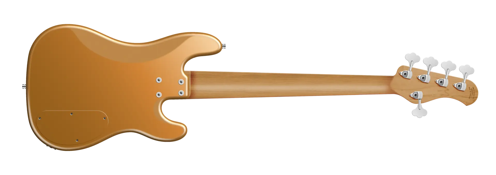 The Sadowsky MasterBuilt 20-Fret Ultra Vintage P Bass brings you a vintage P-bass with that famous modern Sadowsky sound! This 5-string fretless left-hand version has a chambered P-Style body made of American Red Alder and finished in a Solid Firemist Gold Metallic Satin finish and has a Roasted Maple neck with a Tigerstripe Ebony fingerboard. Special features of this bass include a passive Sadowsky P-Style pickup, active electronics with true bypass, treble and bass boost and Vintage Tone Control that give you that special Sadowsky tone: Never harsh or shrill sounding, with strong, powerful (but never muddy!) bass, mids that are present while not too aggressive, and a sweet and airy treble range. It also features light open gear Sadowsky tuners and a Sadowsky Quick String Release Bridge. Made exclusively in our workshop in Germany, this bass weighs never more than 8.4 lbs (3.8 kg). A great choice for bass players looking for a beautiful vintage P bass that is also lightweight and has a modern bass sound.