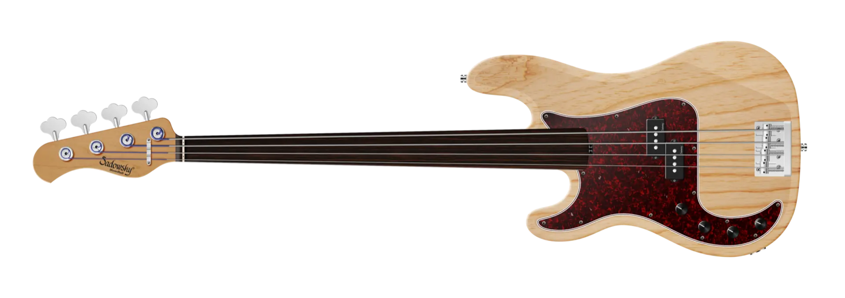 The Sadowsky MasterBuilt 20-Fret Ultra Vintage P Bass brings you a vintage P-bass with that famous modern Sadowsky sound! This 4-string fretless left-hand version has a chambered P-Style body made of American Swamp Ash and finished in a Natural Transparent Satin finish and has a Roasted American Maple neck with a Tigerstripe Ebony fingerboard. Special features of this bass include a passive Sadowsky P-Style pickup, active electronics with true bypass, treble and bass boost and Vintage Tone Control that give you that special Sadowsky tone: Never harsh or shrill sounding, with strong, powerful (but never muddy!) bass, mids that are present while not too aggressive, and a sweet and airy treble range. It also features light open gear Sadowsky tuners and a Sadowsky Quick String Release Bridge. Made exclusively in our workshop in Germany, this bass weighs never more than 8.4 lbs (3.8 kg). A great choice for bass players looking for a beautiful vintage P bass that is also lightweight and has a modern bass sound.