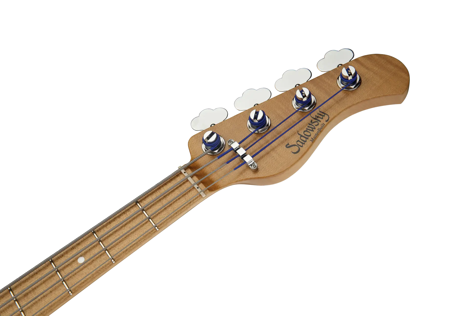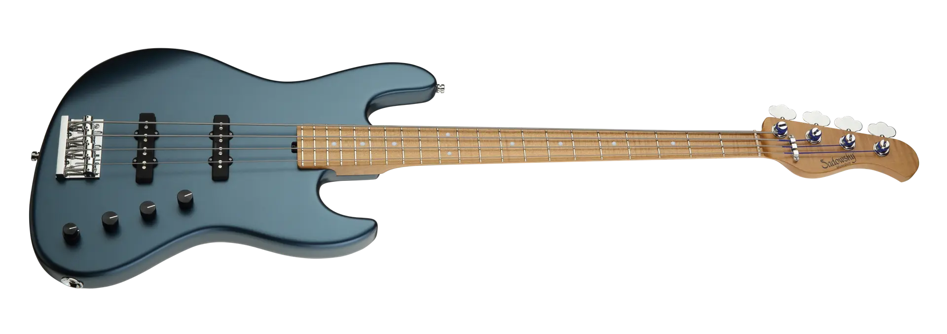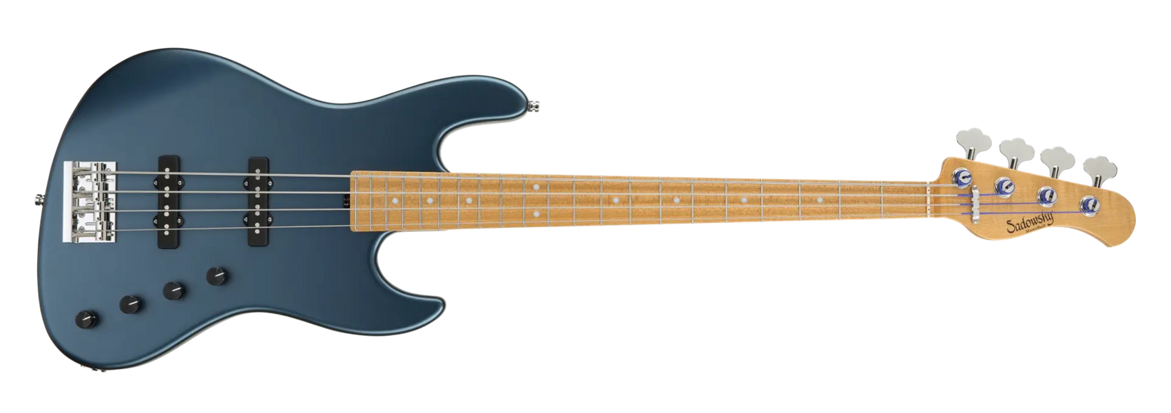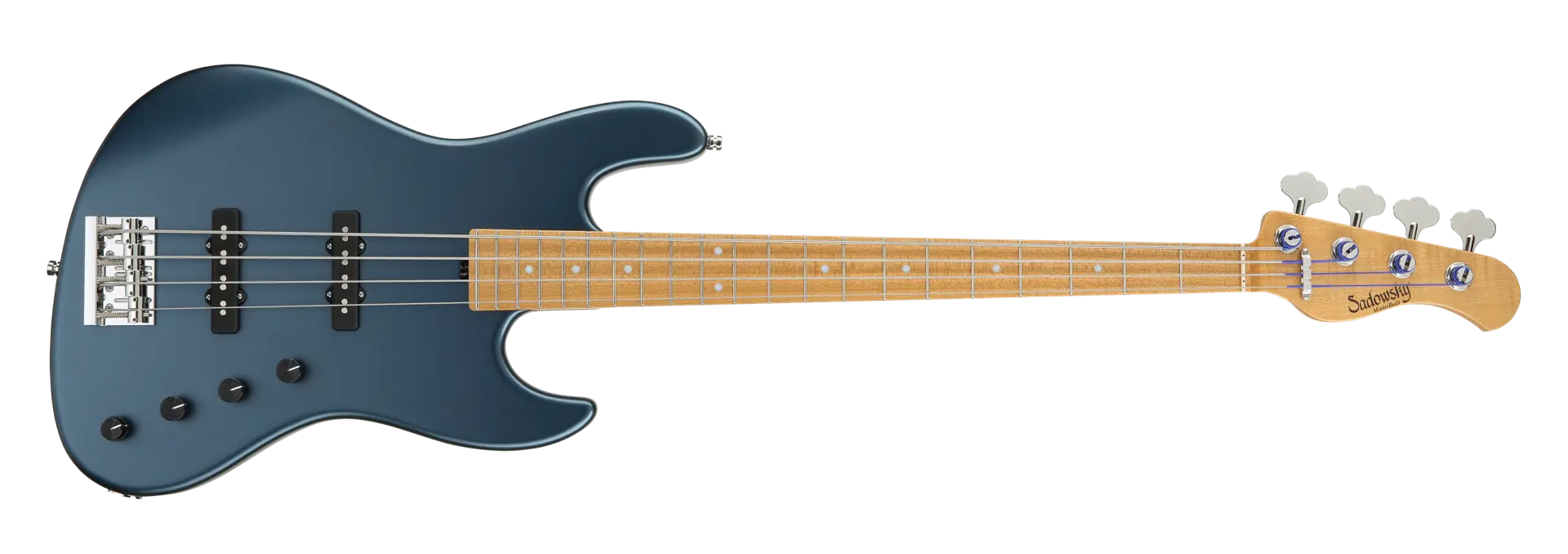 The Sadowsky MasterBuilt 21-Fret Standard J/J bass not only looks great, it also plays and sounds fantastic! Fitted with the famous Sadowsky electronics, you get that special Sadowsky tone: Never harsh or shrill sounding, with strong, powerful (but never muddy!) bass, mids that are present while not too aggressive, and a sweet and airy treble range. This 4-string version has a sleek, undersized J-Style body made of chambered American Swamp Ash that is finished in a Solid Dark Lake Placid Blue Metallic Satin finish. The satin-finished neck is made of Roasted American Maple and has a Roasted American Maple fingerboard. Special features of this bass include two hum-cancelling Sadowsky J-Style pickups, active electronics with true bypass, treble and bass boost and Vintage Tone Control. It also features light open gear Sadowsky tuners and a Sadowsky Quick String Release Bridge. Made exclusively in our workshop in Germany, this bass weighs never more than 8.4 lbs (3.8 kg). A great choice for bass players looking for a beautiful and lightweight bass that offers a modern bass sound.
