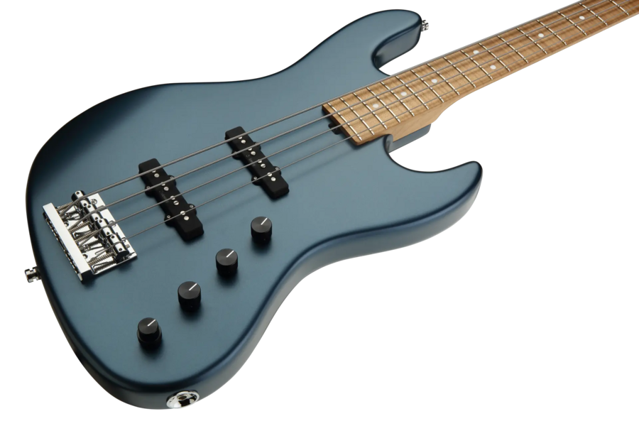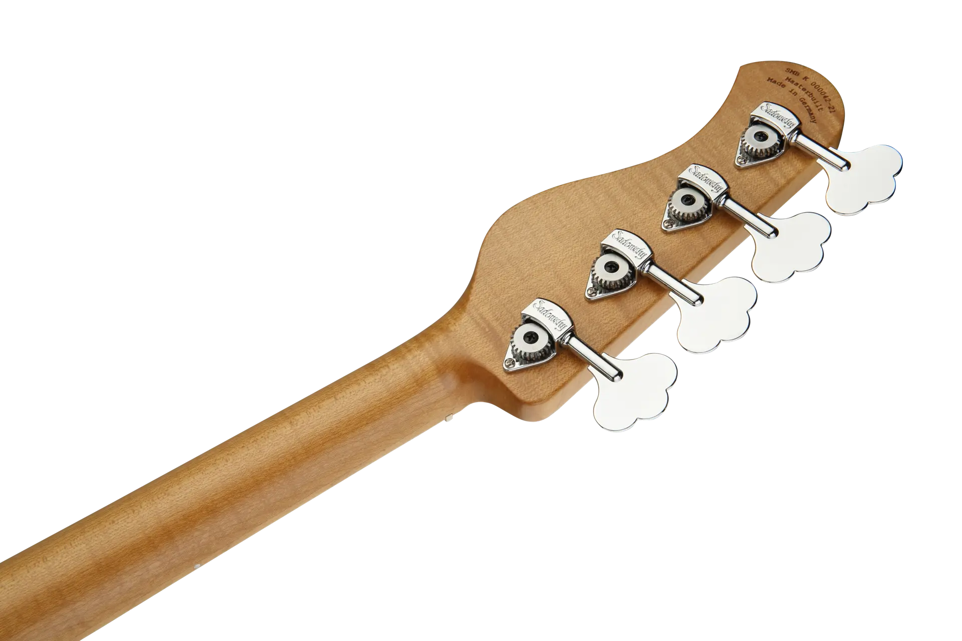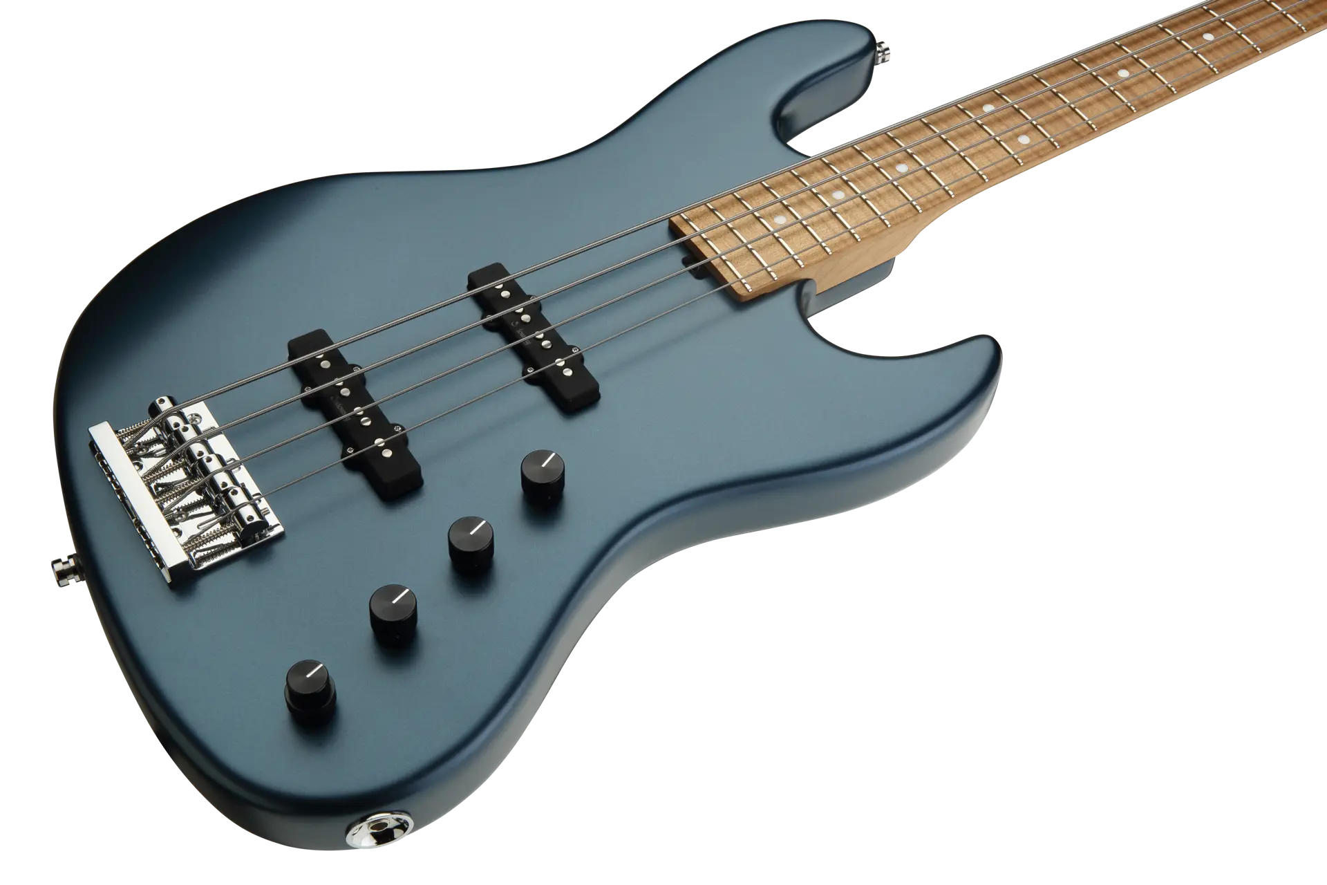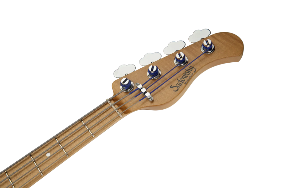 The Sadowsky MasterBuilt 21-Fret Standard J/J bass not only looks great, it also plays and sounds fantastic! Fitted with the famous Sadowsky electronics, you get that special Sadowsky tone: Never harsh or shrill sounding, with strong, powerful (but never muddy!) bass, mids that are present while not too aggressive, and a sweet and airy treble range. This 4-string version has a sleek, undersized J-Style body made of chambered American Swamp Ash that is finished in a Solid Dark Lake Placid Blue Metallic Satin finish. The satin-finished neck is made of Roasted American Maple and has a Roasted American Maple fingerboard. Special features of this bass include two hum-cancelling Sadowsky J-Style pickups, active electronics with true bypass, treble and bass boost and Vintage Tone Control. It also features light open gear Sadowsky tuners and a Sadowsky Quick String Release Bridge. Made exclusively in our workshop in Germany, this bass weighs never more than 8.4 lbs (3.8 kg). A great choice for bass players looking for a beautiful and lightweight bass that offers a modern bass sound.