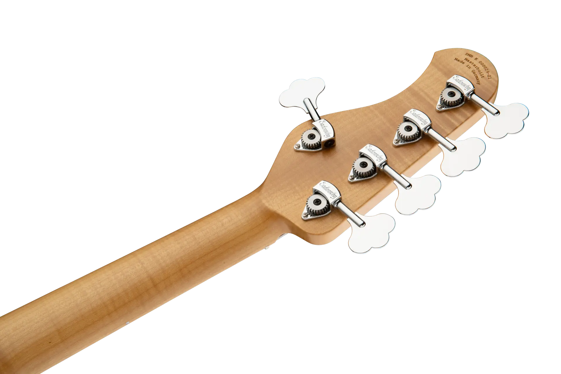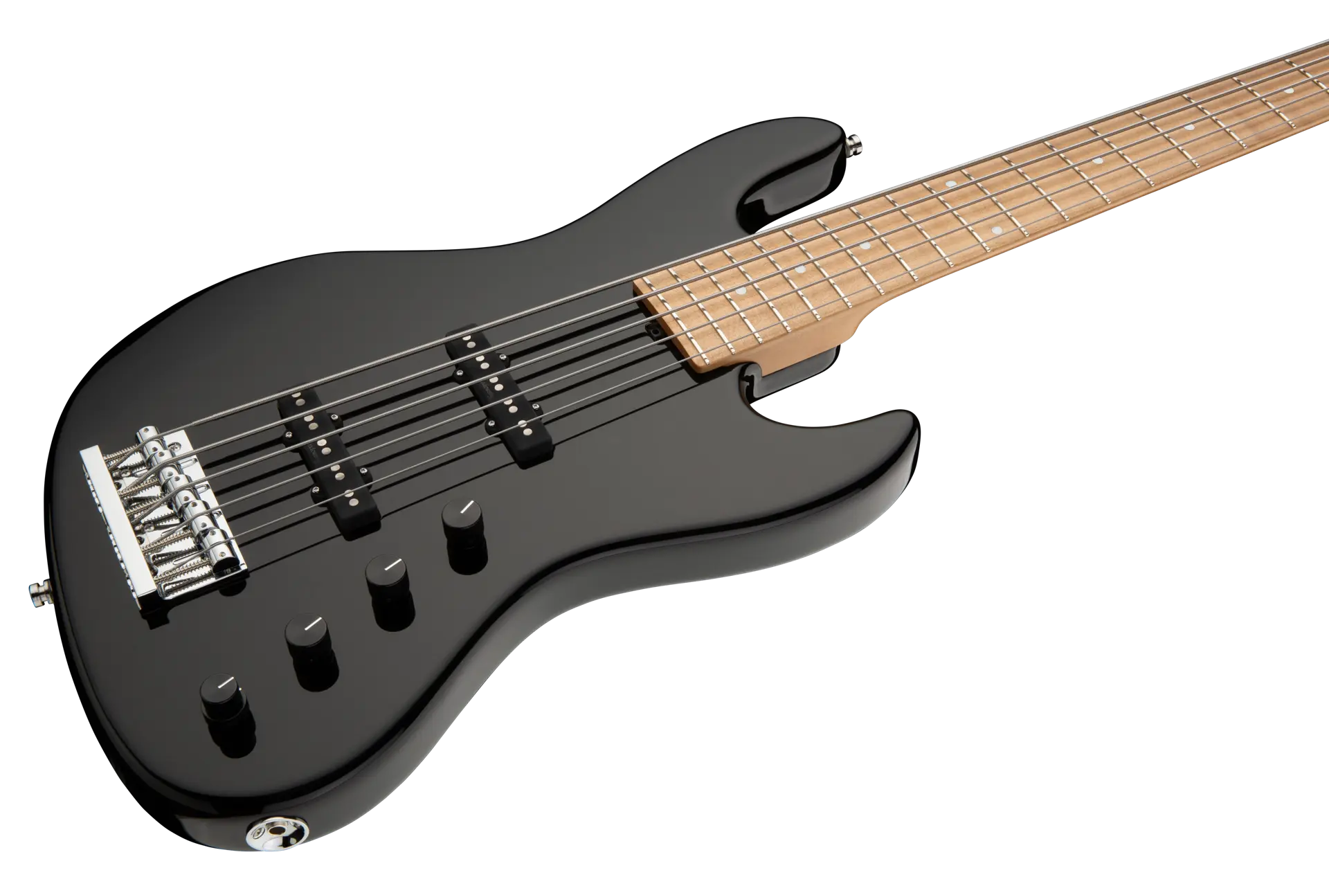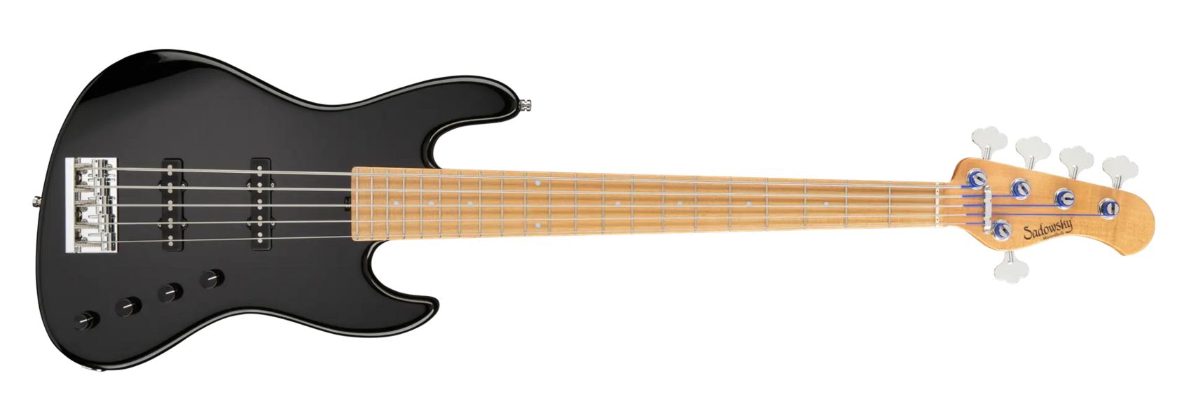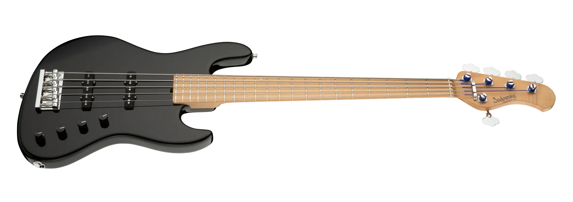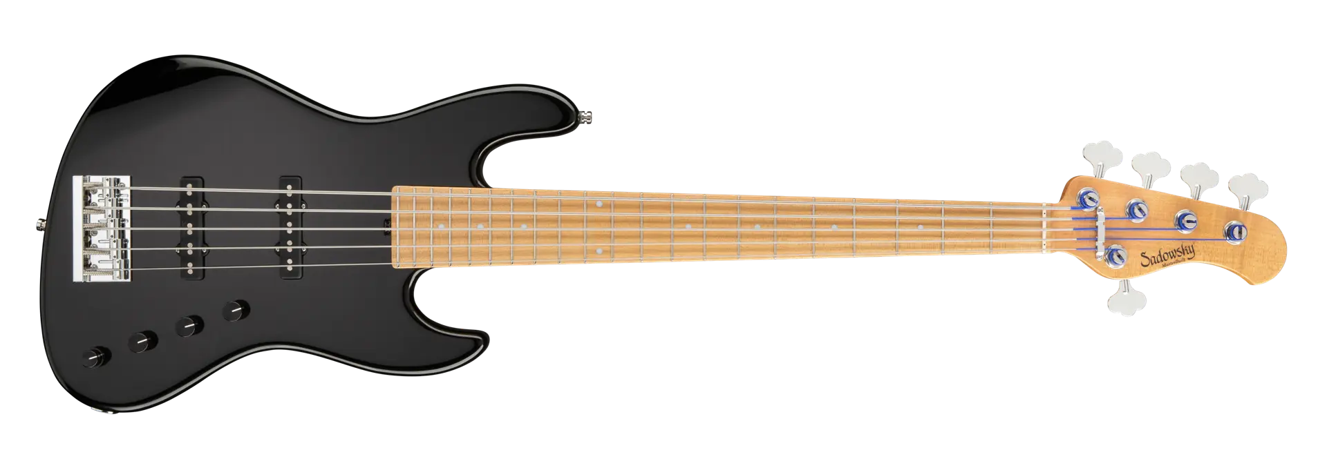 The Sadowsky MasterBuilt 21-Fret Standard J/J bass not only looks great, it also plays and sounds fantastic! Fitted with the famous Sadowsky electronics, you get that special Sadowsky tone: Never harsh or shrill sounding, with strong, powerful (but never muddy!) bass, mids that are present while not too aggressive, and a sweet and airy treble range. This 5-string version has a sleek, undersized J-Style body made of chambered American Swamp Ash that is finished in a Solid Black High Polish finish. The satin-finished neck is made of Roasted American Maple and has a Roasted American Maple fingerboard. Special features of this bass include two hum-cancelling Sadowsky J-Style pickups, active electronics with true bypass, treble and bass boost and Vintage Tone Control. It also features light open gear Sadowsky tuners and a Sadowsky Quick String Release Bridge. Made exclusively in our workshop in Germany, this bass weighs never more than 8.4 lbs (3.8 kg). A great choice for bass players looking for a beautiful and lightweight bass that offers a modern bass sound.