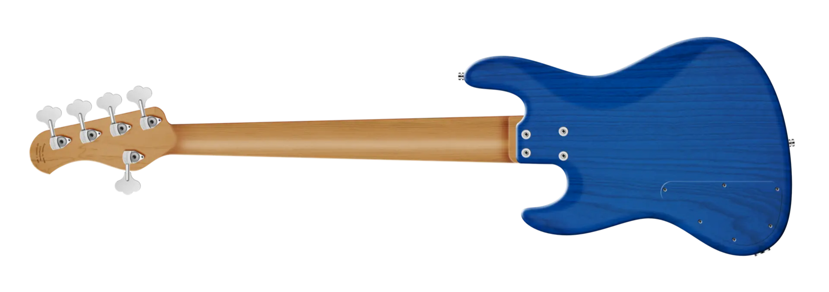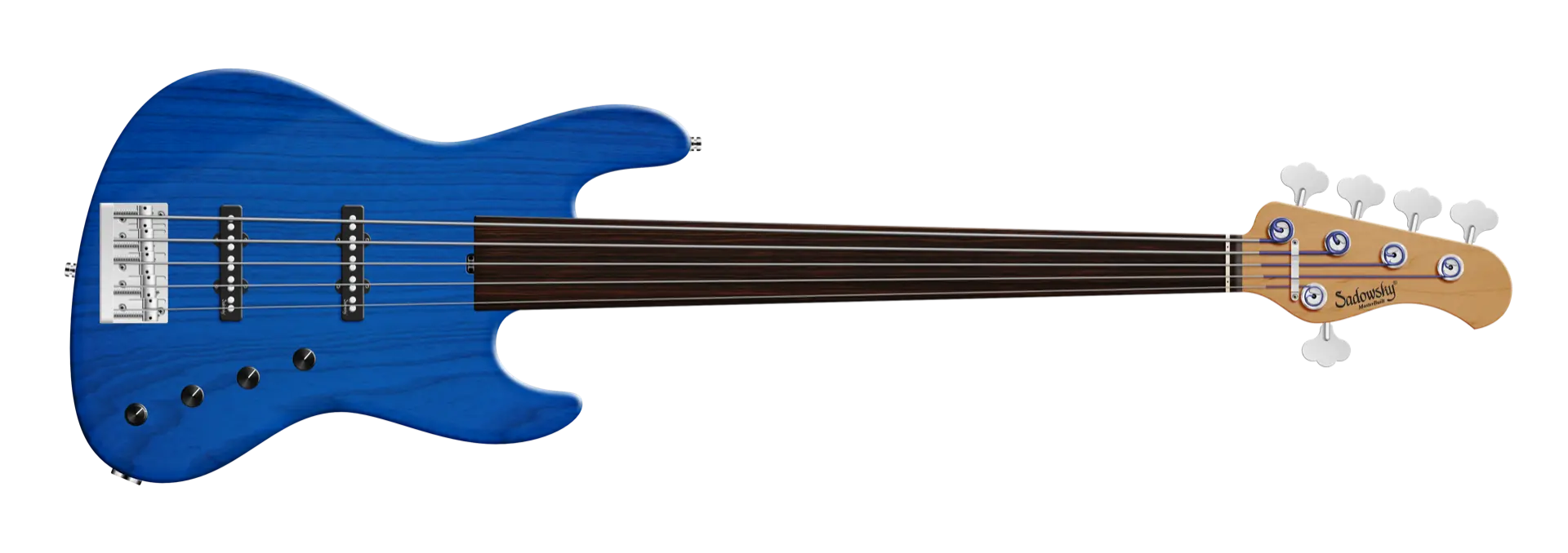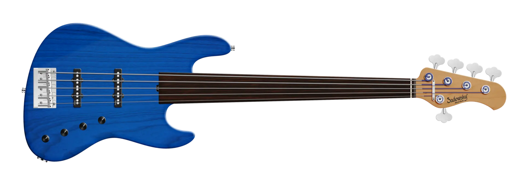 The Sadowsky MasterBuilt 21-Fret Standard J/J bass not only looks great, it also plays and sounds fantastic! Fitted with the famous Sadowsky electronics, you get that special Sadowsky tone: Never harsh or shrill sounding, with strong, powerful (but never muddy!) bass, mids that are present while not too aggressive, and a sweet and airy treble range. This 5-string fretless version has a sleek, undersized J-Style body made of chambered American Swamp Ash that is finished in an Ocean Blue Transparent Satin finish. The satin-finished neck is made of Roasted American Maple and has a Tigerstripe Ebony fingerboard. Special features of this bass include two hum-cancelling Sadowsky J-Style pickups, active electronics with true bypass, treble and bass boost and Vintage Tone Control. It also features light open gear Sadowsky tuners and a Sadowsky Quick String Release Bridge. Made exclusively in our workshop in Germany, this bass weighs never more than 8.4 lbs (3.8 kg). A great choice for bass players looking for a beautiful and lightweight bass that offers a modern bass sound.