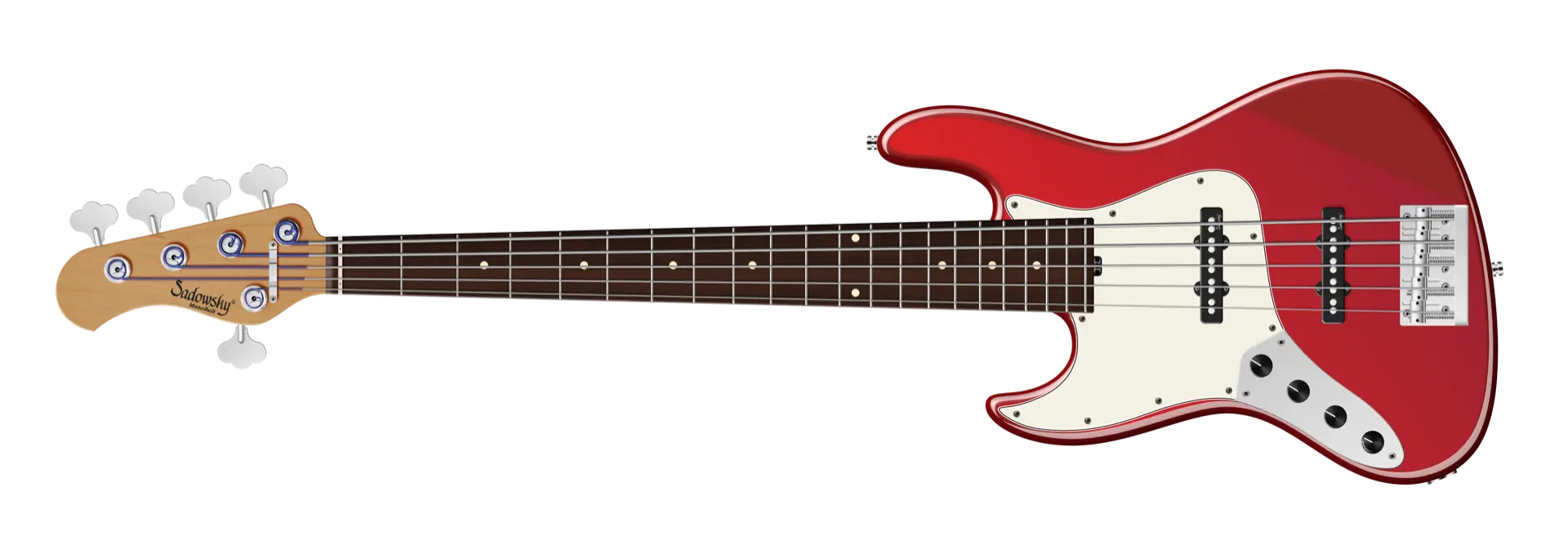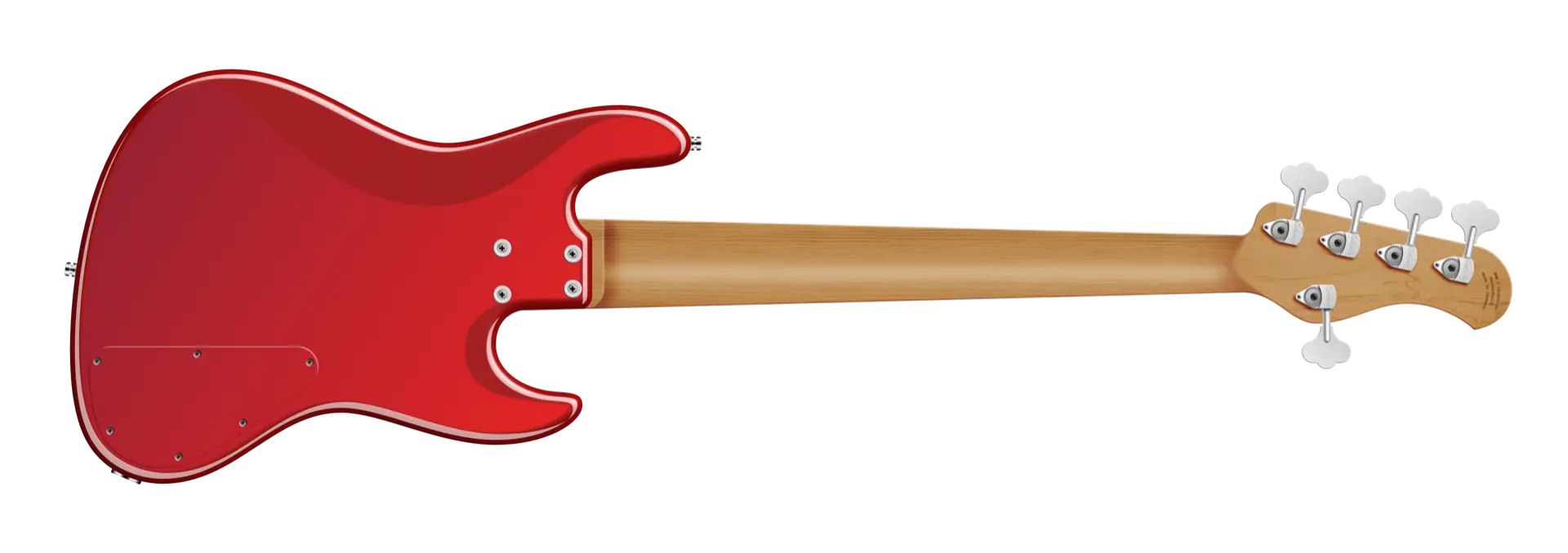The Sadowsky MasterBuilt 21-Fret Vintage J/J bass has a great vintage vibe! Thanks to the famous Sadowsky electronics, you get a vintage-looking bass with that special Sadowsky tone: Never harsh or shrill sounding, with strong, powerful (but never muddy!) bass, mids that are present while not too aggressive, and a sweet and airy treble range. This 5-string left-hand version has a sleek, undersized J-Style body made of American Red Alder that is finished in Solid Candy Apple Red Metallic High Polish. The satin-finished neck is made of Roasted American Maple and has a Morado (Pau Ferro) fingerboard. Special features of this bass include two hum-cancelling Sadowsky J-Style pickups, active electronics with true bypass, treble and bass boost and Vintage Tone Control. It also features light open gear Sadowsky tuners and a Sadowsky Quick String Release Bridge. Made exclusively in our workshop in Germany, this bass weighs never more than 8.4 lbs (3.8 kg). A great choice for bass players looking for a vintage style in a light weight bass with a modern bass sound.
