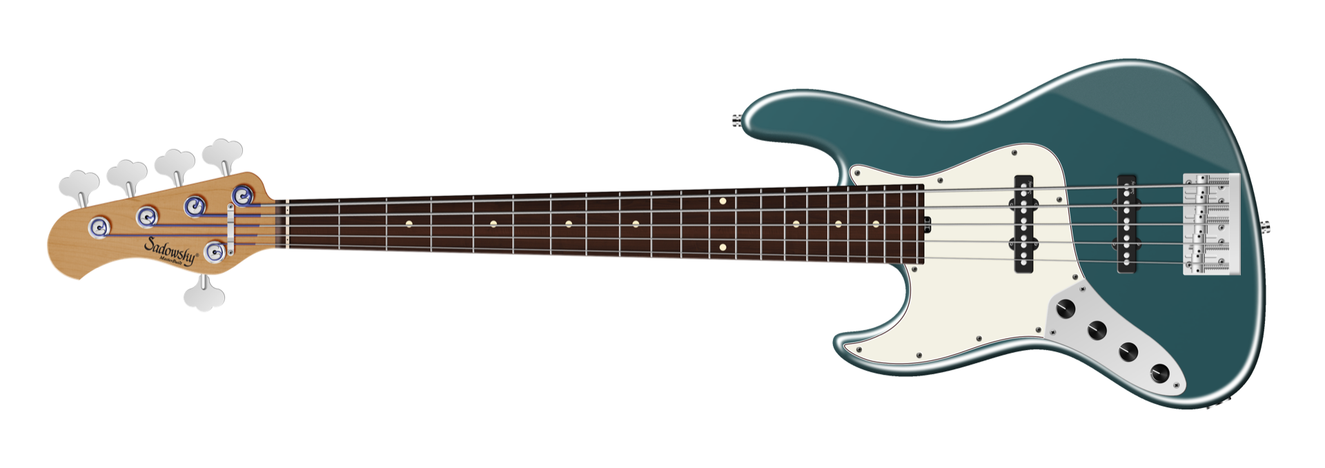 The Sadowsky MasterBuilt 21-Fret Vintage J/J bass has a great vintage vibe! Thanks to the famous Sadowsky electronics, you get a vintage-looking bass with that special Sadowsky tone: Never harsh or shrill sounding, with strong, powerful (but never muddy!) bass, mids that are present while not too aggressive, and a sweet and airy treble range. This 5-string left-hand version has a sleek, undersized J-Style body made of American Red Alder that is finished in Solid Firemist Gold Metallic Satin. The satin-finished neck is made of Roasted American Maple and has a Morado (Pau Ferro) fingerboard. Special features of this bass include two hum-cancelling Sadowsky J-Style pickups, active electronics with true bypass, treble and bass boost and Vintage Tone Control. It also features light open gear Sadowsky tuners and a Sadowsky Quick String Release Bridge. Made exclusively in our workshop in Germany, this bass weighs never more than 8.4 lbs (3.8 kg). A great choice for bass players looking for a vintage style in a light weight bass with a modern bass sound.