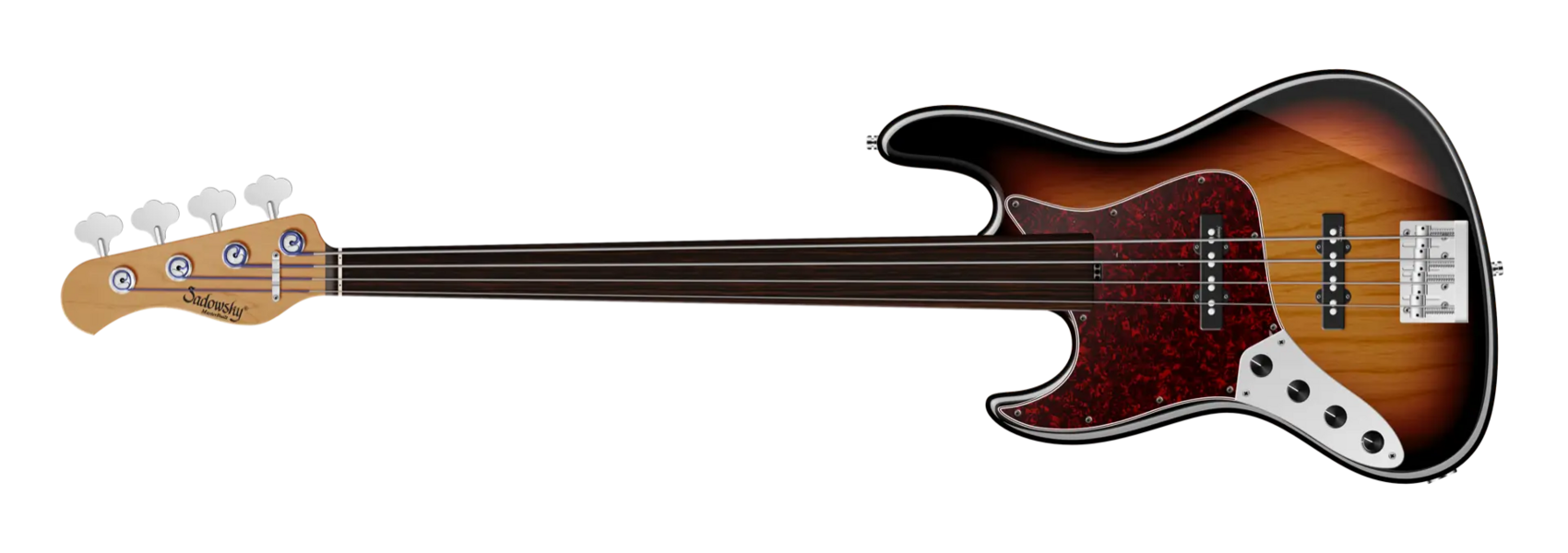 The Sadowsky MasterBuilt 21-Fret Vintage J/J bass has a great vintage vibe! Thanks to the famous Sadowsky electronics, you get a vintage-looking bass with that special Sadowsky tone: Never harsh or shrill sounding, with strong, powerful (but never muddy!) bass, mids that are present while not too aggressive, and a sweet and airy treble range. This 4-string left-hand fretless version has a sleek, undersized J-Style body made of American Swamp Ash that is finished in '59 Burst Transparent High Polish. The satin-finished neck is made of Roasted American Maple and has a Tigerstripe Ebony fingerboard. Special features of this bass include two hum-cancelling Sadowsky J-Style pickups, active electronics with true bypass, treble and bass boost and Vintage Tone Control. It also features light open gear Sadowsky tuners and a Sadowsky Quick String Release Bridge. Made exclusively in our workshop in Germany, this bass weighs never more than 8.4 lbs (3.8 kg). A great choice for bass players looking for a vintage style in a light weight bass with a modern bass sound.