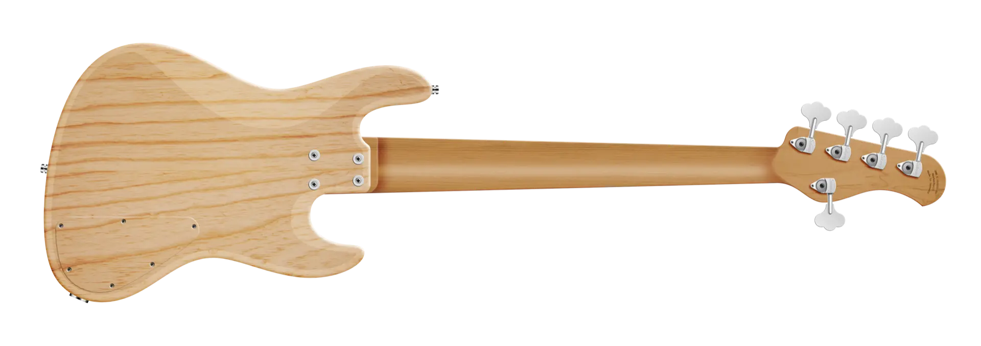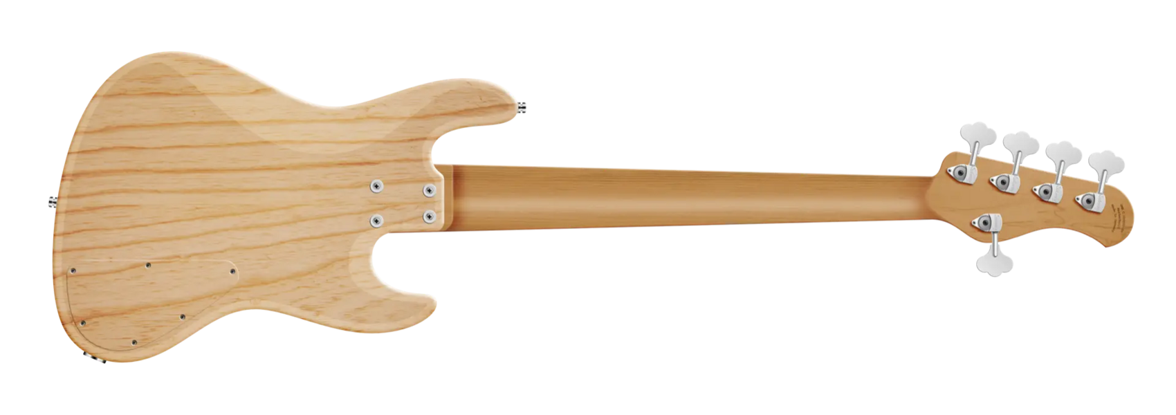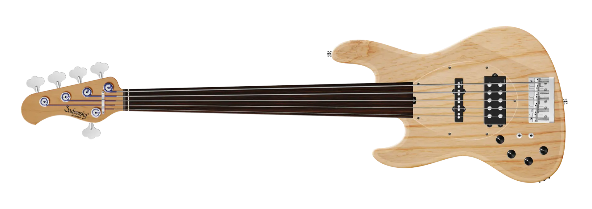 The Sadowsky MasterBuilt 21-Fret Vintage M/J bass offer the looks of a vintage M/J bass, but with that famous modern Sadowsky tone. This 5-string left-hand fretless bass, seen here in a Natural Transparent Satin finish, features a sleek, undersized, chambered J-Style body that is made of American Swamp Ash. The neck is made of Roasted American Maple and features a Tigerstripe Ebony fingerboard. Special features of this bass include a hum-cancelling Sadowsky J-Style neck pickup and a Sadowsky Quad-Coil Humbucker with Alnico V magnets. The active electronics have true bypass, Vintage Tone Control, treble and bass boost, and two 3-way toggles switch for pickup configuration (series / parallel / single coil). This bass also features light open gear Sadowsky tuners and the Sadowsky Quick String Release Bridge. Sadowsky MasterBuilt 21-Fret Vintage M/J basses are made exclusively in Germany. The weight of this bass is never more than 8.4 lbs (3.8 kg). A good choice for players who want a lightweight bass that offers a modern bass sound.