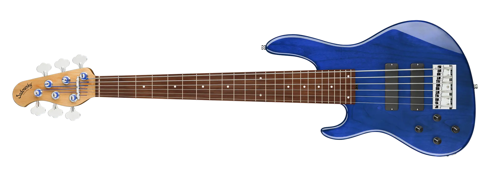 The Sadowsky MasterBuilt 24-Fret Modern Bass is perfect for any player looking for a modern bass with that famous Sadowsky tone: Never harsh or shrill sounding, with strong, powerful but never muddy bass, with present, but not too aggressive mids, and a sweet and airy treble range. This 6-string left-hand bass has a chambered American Red Alder body with an Ocean Blue Transparent High Polish finish. The body shape is sleek and undersized with deeper cutaways for better playability and a full two octave note range. The neck is made from Roasted American Maple and has a Morado (Pau Ferro) fretboard. This bass is fitted with two passive Sadowsky Soapbar pickups, both in a modern position, and has active electronics that offer true bypass, Vintage Tone Control, as well as treble and bass boost. Hardware includes Sadowsky light open gear tuners and a Sadowsky Quick String Release bridge. Each Sadowsky MasterBuilt 24-Fret Modern Bass is made exclusively in our workshop in Germany and weighs no more than 9.2 lbs (4.17 kg). A good choice for bass players who are seaching for a light, modern looking bass with that special modern Sadowsky sound.