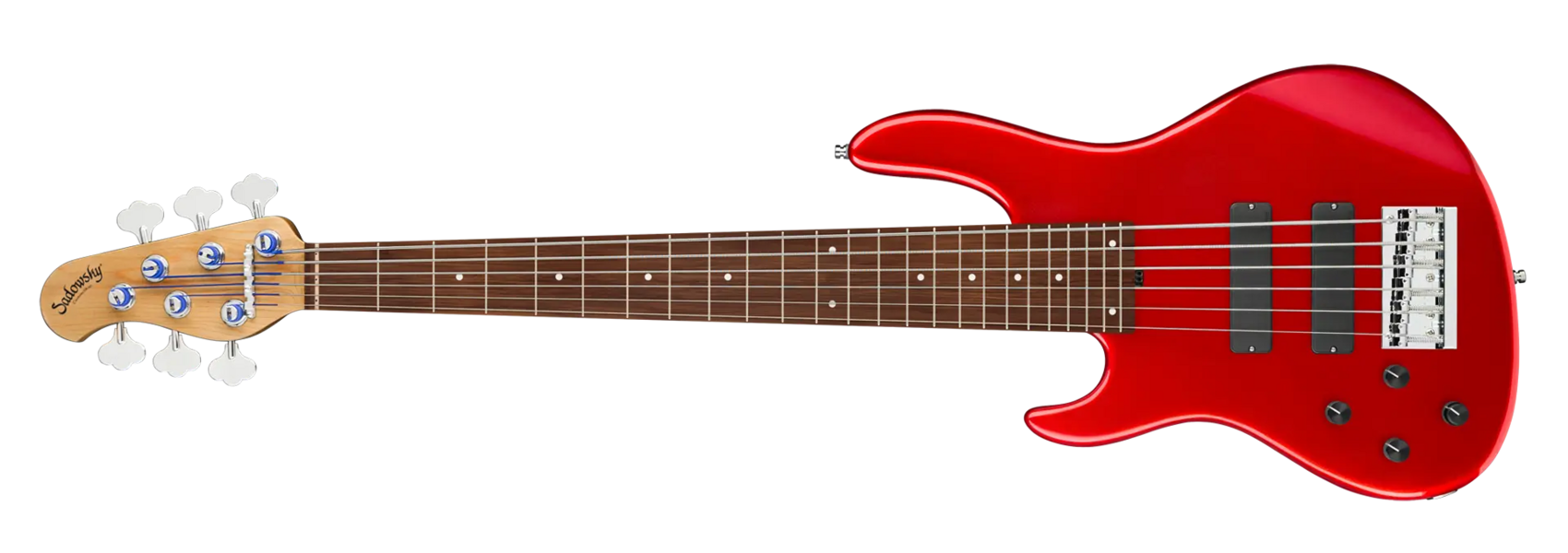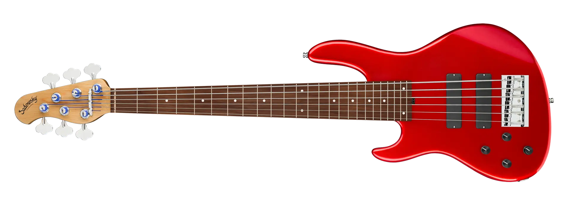 The Sadowsky MasterBuilt 24-Fret Modern Bass is perfect for any player looking for a modern bass with that famous Sadowsky tone: Never harsh or shrill sounding, with strong, powerful but never muddy bass, with present, but not too aggressive mids, and a sweet and airy treble range. This 6-string left-hand bass has a chambered American Red Alder body with a Solid Candy Apple Red Metallic High Polish finish. The body shape is sleek and undersized with deeper cutaways for better playability and a full two octave note range. The neck is made from Roasted American Maple and has a Morado (Pau Ferro) fretboard. This bass is fitted with two passive Sadowsky Soapbar pickups, both in a modern position, and has active electronics that offer true bypass, Vintage Tone Control, as well as treble and bass boost. Hardware includes Sadowsky light open gear tuners and a Sadowsky Quick String Release bridge. Each Sadowsky MasterBuilt 24-Fret Modern Bass is made exclusively in our workshop in Germany and weighs no more than 9.2 lbs (4.17 kg). A good choice for bass players who are seaching for a light, modern looking bass with that special modern Sadowsky sound.