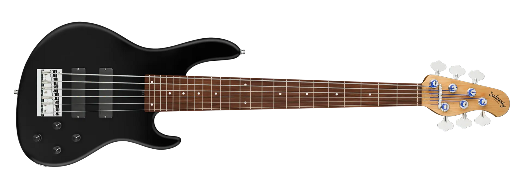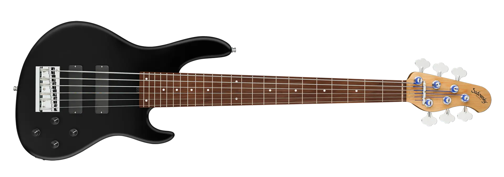 The Sadowsky MasterBuilt 24-Fret Modern Bass is perfect for any player looking for a modern bass with that famous Sadowsky tone: Never harsh or shrill sounding, with strong, powerful but never muddy bass, with present, but not too aggressive mids, and a sweet and airy treble range. This 6-string bass has a chambered American Red Alder body with a Solid Black Satin finish. The body shape is sleek and undersized with deeper cutaways for better playability and a full two octave note range. The neck is made from Roasted American Maple and has a Morado (Pau Ferro) fretboard. This bass is fitted with two passive Sadowsky Soapbar pickups, both in a modern position, and has active electronics that offer true bypass, Vintage Tone Control, as well as treble and bass boost. Hardware includes Sadowsky light open gear tuners and a Sadowsky Quick String Release bridge. Each Sadowsky MasterBuilt 24-Fret Modern Bass is made exclusively in our workshop in Germany and weighs no more than 9.2 lbs (4.17 kg). A good choice for bass players who are seaching for a light, modern looking bass with that special modern Sadowsky sound.