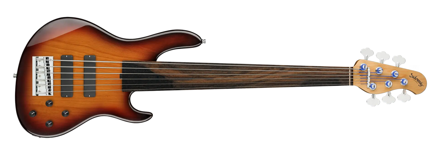 The Sadowsky MasterBuilt 24-Fret Modern Bass is perfect for any player looking for a modern bass with that famous Sadowsky tone: Never harsh or shrill sounding, with strong, powerful but never muddy bass, with present, but not too aggressive mids, and a sweet and airy treble range. This 6-string fretless bass has a chambered American Red Alder body with a '59 Burst Transparent High Polish finish. The body shape is sleek and undersized with deeper cutaways for better playability and a full two octave note range. The neck is made from Roasted American Maple and has a Tigerstripe Ebony fretboard. This bass is fitted with two passive Sadowsky Soapbar pickups, both in a modern position, and has active electronics that offer true bypass, Vintage Tone Control, as well as treble and bass boost. Hardware includes Sadowsky light open gear tuners and a Sadowsky Quick String Release bridge. Each Sadowsky MasterBuilt 24-Fret Modern Bass is made exclusively in our workshop in Germany and weighs no more than 9.2 lbs (4.17 kg). A good choice for bass players who are seaching for a light, modern looking bass with that special modern Sadowsky sound.