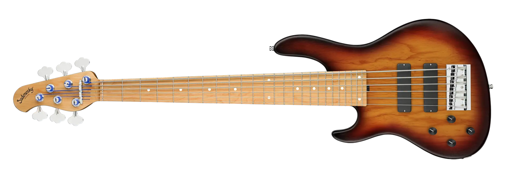 The Sadowsky MasterBuilt 24-Fret Modern Bass is perfect for any player looking for a modern bass with that famous Sadowsky tone: Never harsh or shrill sounding, with strong, powerful but never muddy bass, with present, but not too aggressive mids, and a sweet and airy treble range. This 6-string left-hand bass has a chambered American Swamp Ash body with a '59 Burst Transparent Satin finish. The body shape is sleek and undersized with deeper cutaways for better playability and a full two octave note range. The neck is made from Roasted American Maple and has a Roasted American Maple fretboard. This bass is fitted with two passive Sadowsky Soapbar pickups, both in a modern position, and has active electronics that offer true bypass, Vintage Tone Control, as well as treble and bass boost. Hardware includes Sadowsky light open gear tuners and a Sadowsky Quick String Release bridge. Each Sadowsky MasterBuilt 24-Fret Modern Bass is made exclusively in our workshop in Germany and weighs no more than 9.2 lbs (4.17 kg). A good choice for bass players who are seaching for a light, modern looking bass with that special modern Sadowsky sound.