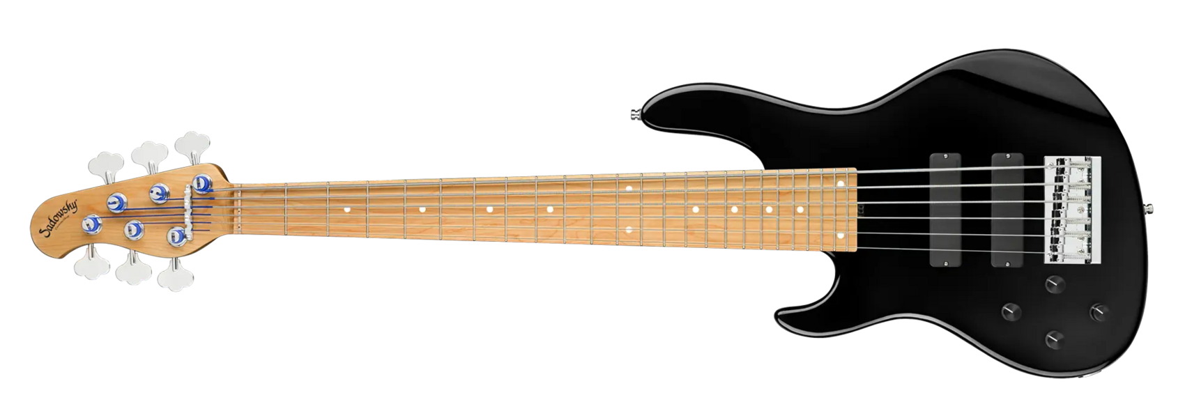 The Sadowsky MasterBuilt 24-Fret Modern Bass is perfect for any player looking for a modern bass with that famous Sadowsky tone: Never harsh or shrill sounding, with strong, powerful but never muddy bass, with present, but not too aggressive mids, and a sweet and airy treble range. This 6-string left-hand bass has a chambered American Swamp Ash body with a Solid Black High Polish finish. The body shape is sleek and undersized with deeper cutaways for better playability and a full two octave note range. The neck is made from Roasted American Maple and has a Roasted American Maple fretboard. This bass is fitted with two passive Sadowsky Soapbar pickups, both in a modern position, and has active electronics that offer true bypass, Vintage Tone Control, as well as treble and bass boost. Hardware includes Sadowsky light open gear tuners and a Sadowsky Quick String Release bridge. Each Sadowsky MasterBuilt 24-Fret Modern Bass is made exclusively in our workshop in Germany and weighs no more than 9.2 lbs (4.17 kg). A good choice for bass players who are seaching for a light, modern looking bass with that special modern Sadowsky sound.