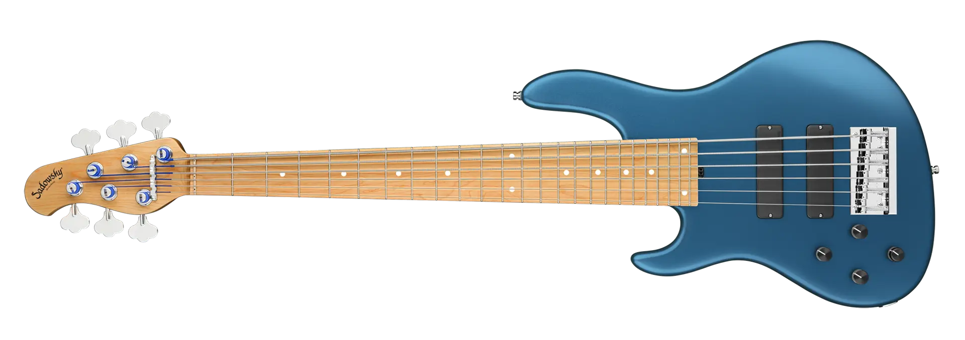 The Sadowsky MasterBuilt 24-Fret Modern Bass is perfect for any player looking for a modern bass with that famous Sadowsky tone: Never harsh or shrill sounding, with strong, powerful but never muddy bass, with present, but not too aggressive mids, and a sweet and airy treble range. This 6-string left-hand bass has a chambered American Swamp Ash body with a Solid Dark Lake Placid Blue Metallic Satin finish. The body shape is sleek and undersized with deeper cutaways for better playability and a full two octave note range. The neck is made from Roasted American Maple and has a Roasted American Maple fretboard. This bass is fitted with two passive Sadowsky Soapbar pickups, both in a modern position, and has active electronics that offer true bypass, Vintage Tone Control, as well as treble and bass boost. Hardware includes Sadowsky light open gear tuners and a Sadowsky Quick String Release bridge. Each Sadowsky MasterBuilt 24-Fret Modern Bass is made exclusively in our workshop in Germany and weighs no more than 9.2 lbs (4.17 kg). A good choice for bass players who are seaching for a light, modern looking bass with that special modern Sadowsky sound.