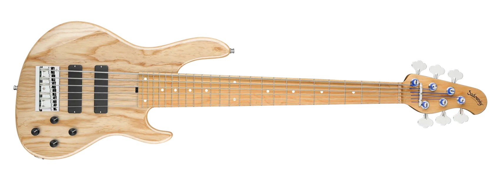 The Sadowsky MasterBuilt 24-Fret Modern Bass is perfect for any player looking for a modern bass with that famous Sadowsky tone: Never harsh or shrill sounding, with strong, powerful but never muddy bass, with present, but not too aggressive mids, and a sweet and airy treble range. This 6-string bass has a chambered American Swamp Ash body with a Natural Transparent High Polish finish. The body shape is sleek and undersized with deeper cutaways for better playability and a full two octave note range. The neck is made from Roasted American Maple and has a Roasted American Maple fretboard. This bass is fitted with two passive Sadowsky Soapbar pickups, both in a modern position, and has active electronics that offer true bypass, Vintage Tone Control, as well as treble and bass boost. Hardware includes Sadowsky light open gear tuners and a Sadowsky Quick String Release bridge. Each Sadowsky MasterBuilt 24-Fret Modern Bass is made exclusively in our workshop in Germany and weighs no more than 9.2 lbs (4.17 kg). A good choice for bass players who are seaching for a light, modern looking bass with that special modern Sadowsky sound.
