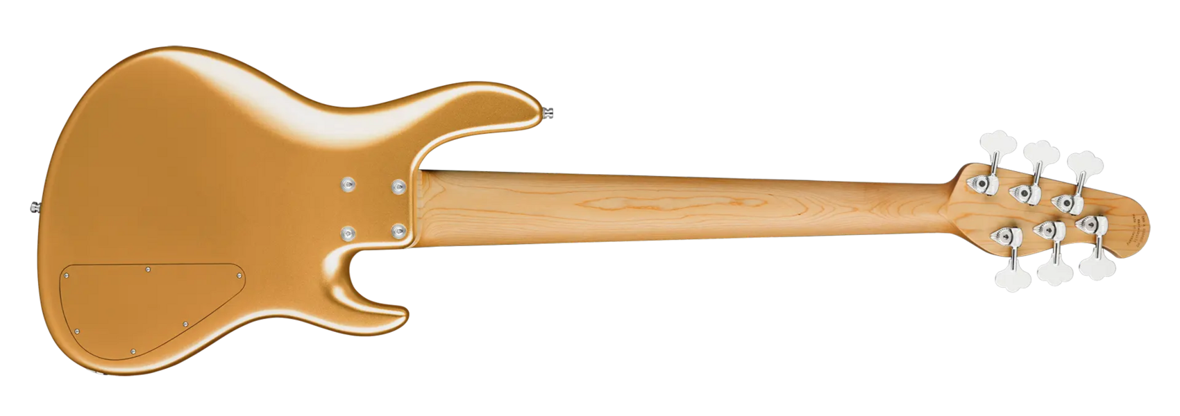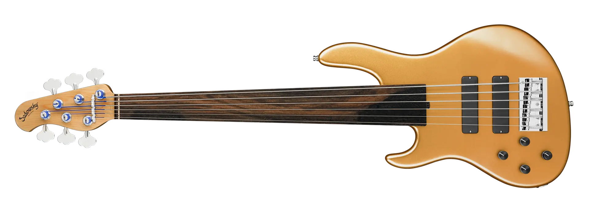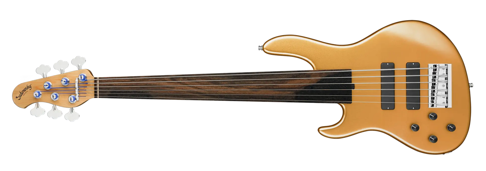 The Sadowsky MasterBuilt 24-Fret Modern Bass is perfect for any player looking for a modern bass with that famous Sadowsky tone: Never harsh or shrill sounding, with strong, powerful but never muddy bass, with present, but not too aggressive mids, and a sweet and airy treble range. This 6-string left-hand fretless bass has a chambered American Swamp Ash body with a Solid Firemist Gold Metallic Satin finish. The body shape is sleek and undersized with deeper cutaways for better playability and a full two octave note range. The neck is made from Roasted American Maple and has a Tigerstripe Ebony fretboard. This bass is fitted with two passive Sadowsky Soapbar pickups, both in a modern position, and has active electronics that offer true bypass, Vintage Tone Control, as well as treble and bass boost. Hardware includes Sadowsky light open gear tuners and a Sadowsky Quick String Release bridge. Each Sadowsky MasterBuilt 24-Fret Modern Bass is made exclusively in our workshop in Germany and weighs no more than 9.2 lbs (4.17 kg). A good choice for bass players who are seaching for a light, modern looking bass with that special modern Sadowsky sound.