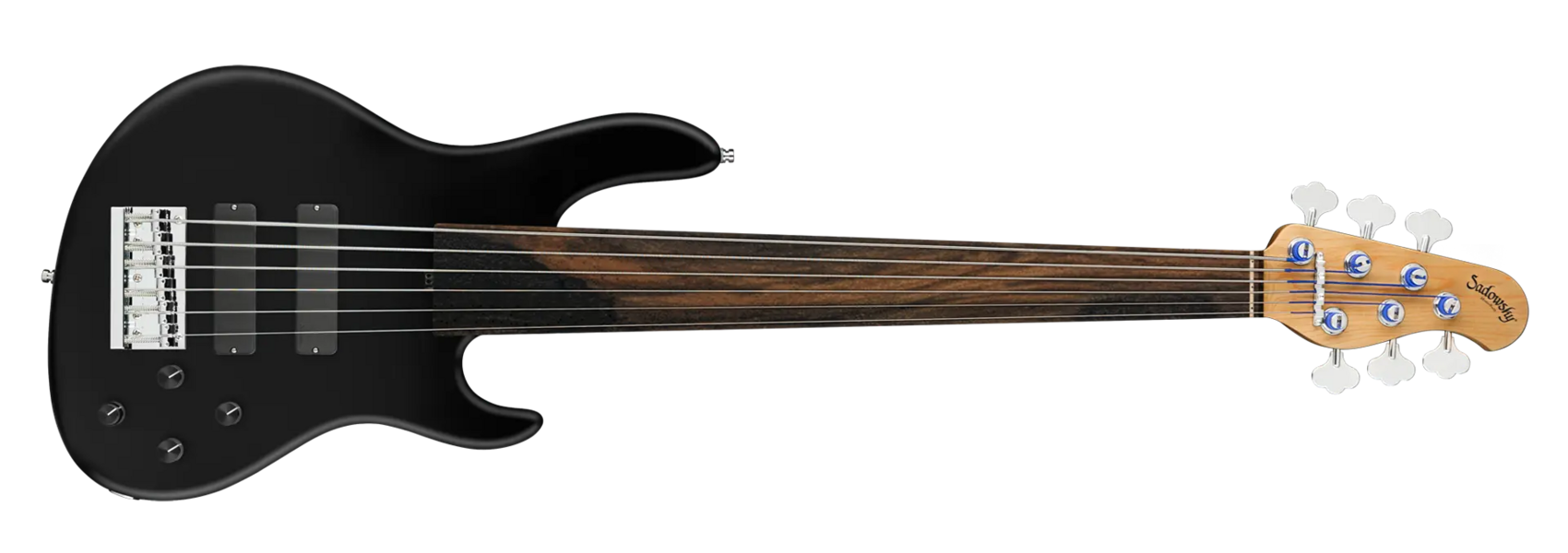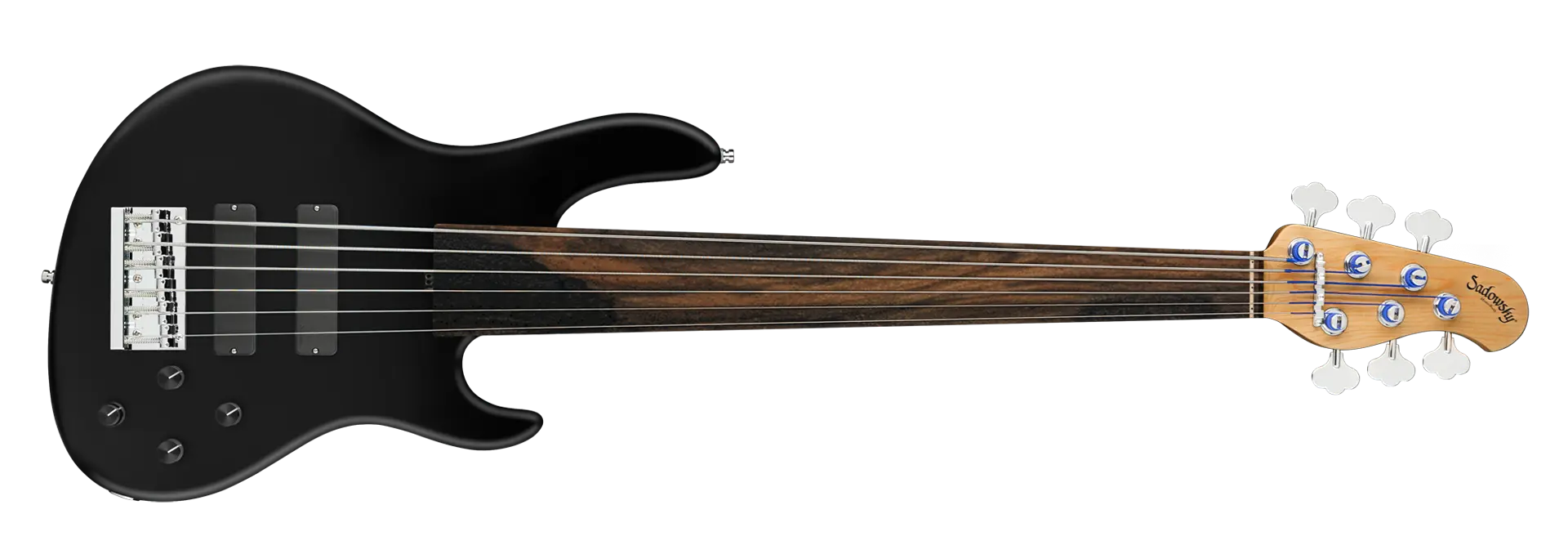 The Sadowsky MasterBuilt 24-Fret Modern Bass is perfect for any player looking for a modern bass with that famous Sadowsky tone: Never harsh or shrill sounding, with strong, powerful but never muddy bass, with present, but not too aggressive mids, and a sweet and airy treble range. This 6-string fretless bass has a chambered American Swamp Ash body with a Solid Black Satin finish. The body shape is sleek and undersized with deeper cutaways for better playability and a full two octave note range. The neck is made from Roasted American Maple and has a Tigerstripe Ebony fretboard. This bass is fitted with two passive Sadowsky Soapbar pickups, both in a modern position, and has active electronics that offer true bypass, Vintage Tone Control, as well as treble and bass boost. Hardware includes Sadowsky light open gear tuners and a Sadowsky Quick String Release bridge. Each Sadowsky MasterBuilt 24-Fret Modern Bass is made exclusively in our workshop in Germany and weighs no more than 9.2 lbs (4.17 kg). A good choice for bass players who are seaching for a light, modern looking bass with that special modern Sadowsky sound.