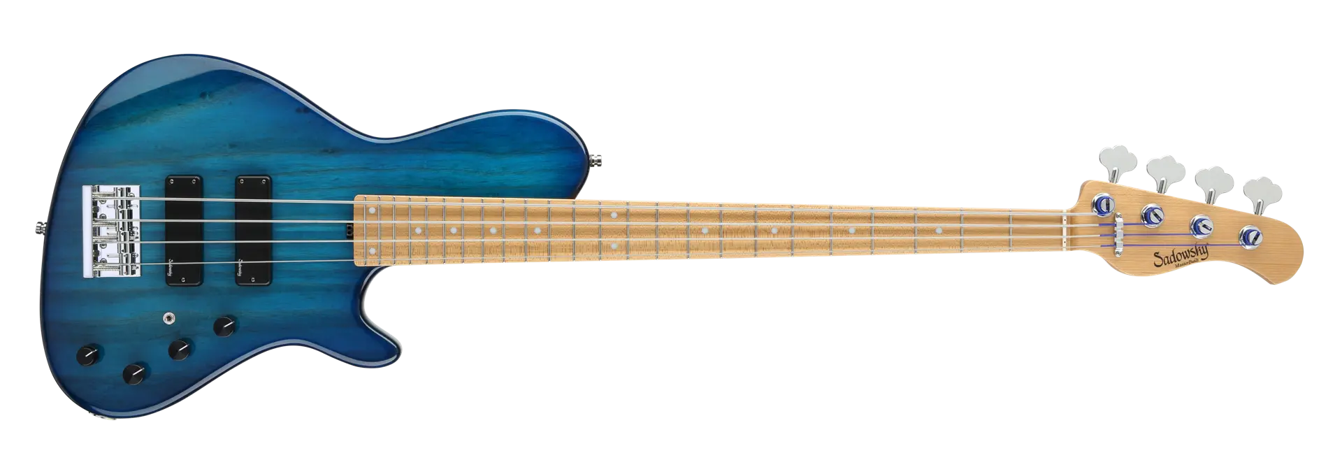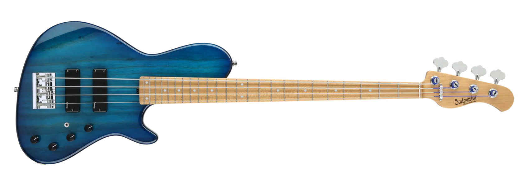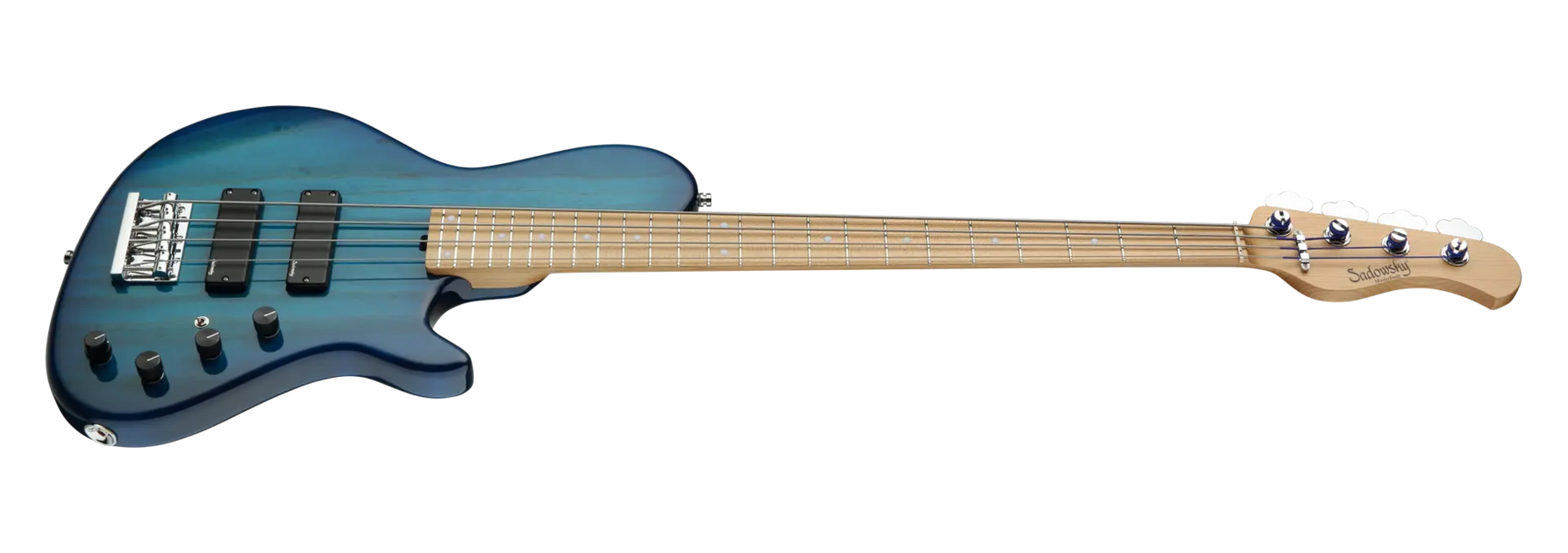 The Sadowsky MasterBuilt 24-Fret Single Cut Bass 4-string bass features a sleek single-cut style body made of chambered American Swamp Ash with a Bora Blue Burst Transparent High Polish finish. The neck is made of Roasted American Maple and features a Roasted American Maple fingerboard. Special features on this bass include Sadowsky Soapbar pickups as well as Roger's famous electronics featuring a Preamp with switchable mid-boost and trim pot (choice of 500 Hz or 800 Hz, wide or narrow bandwidth), Vintage Tone Control and preamp bypass. Controls include Volume, Balance, VTC (P/P), Treble and Bass. The hardware includes a Sadowsky Quick String Release Bridge and light open gear Sadowsky tuners. Made exclusively in Germany, a Sadowsky MasterBuilt 24-Fret Single Cut bass never weighs more than 8.4 lbs (3.8 kg). It’s a great choice for players who want a lightweight single-cut bass with that famous Sadowsky tone: strong, powerful bass that is never muddy. Mids that are present but not too aggressive and a sweet and airy treble range.