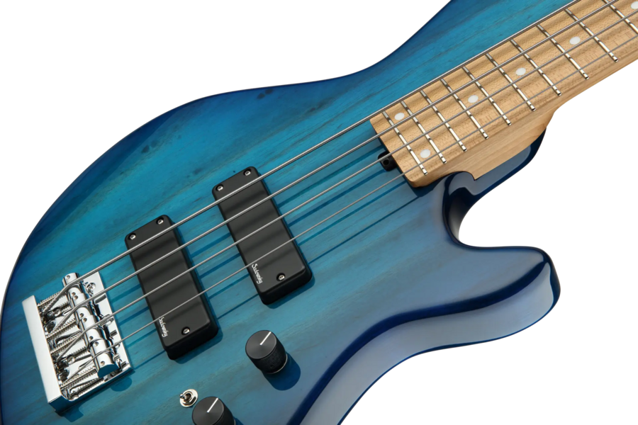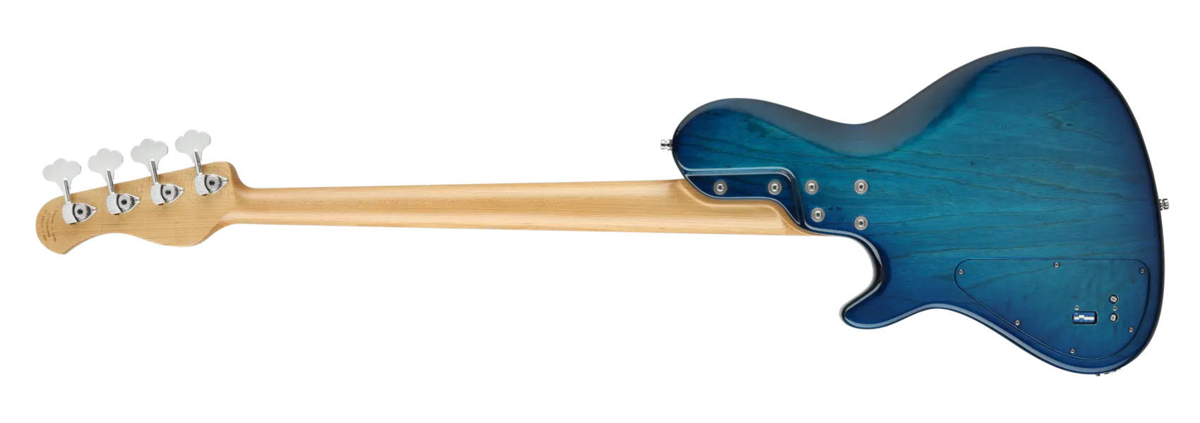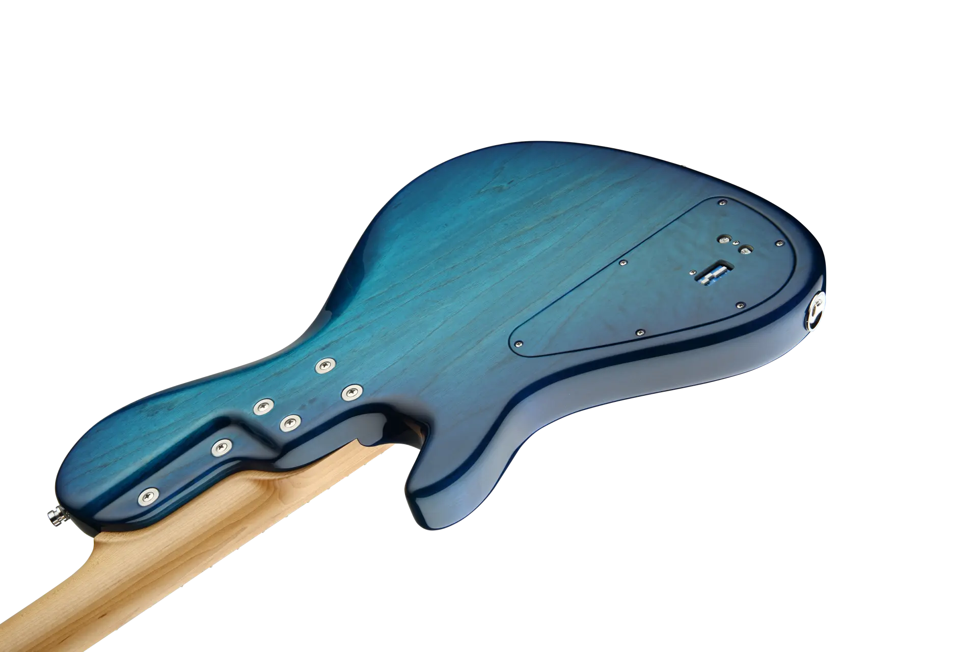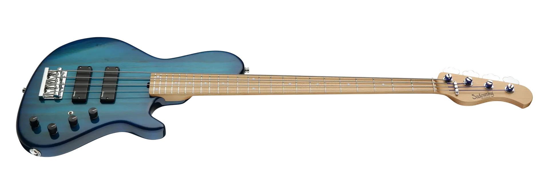 The Sadowsky MasterBuilt 24-Fret Single Cut Bass 4-string bass features a sleek single-cut style body made of chambered American Swamp Ash with a Bora Blue Burst Transparent High Polish finish. The neck is made of Roasted American Maple and features a Roasted American Maple fingerboard. Special features on this bass include Sadowsky Soapbar pickups as well as Roger's famous electronics featuring a Preamp with switchable mid-boost and trim pot (choice of 500 Hz or 800 Hz, wide or narrow bandwidth), Vintage Tone Control and preamp bypass. Controls include Volume, Balance, VTC (P/P), Treble and Bass. The hardware includes a Sadowsky Quick String Release Bridge and light open gear Sadowsky tuners. Made exclusively in Germany, a Sadowsky MasterBuilt 24-Fret Single Cut bass never weighs more than 8.4 lbs (3.8 kg). It’s a great choice for players who want a lightweight single-cut bass with that famous Sadowsky tone: strong, powerful bass that is never muddy. Mids that are present but not too aggressive and a sweet and airy treble range.