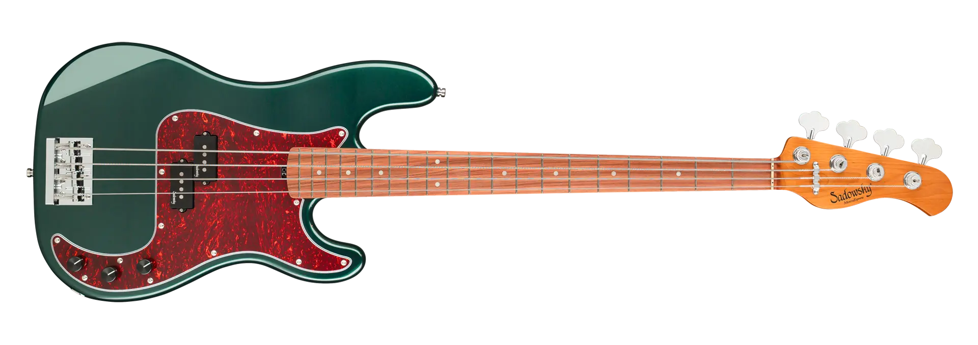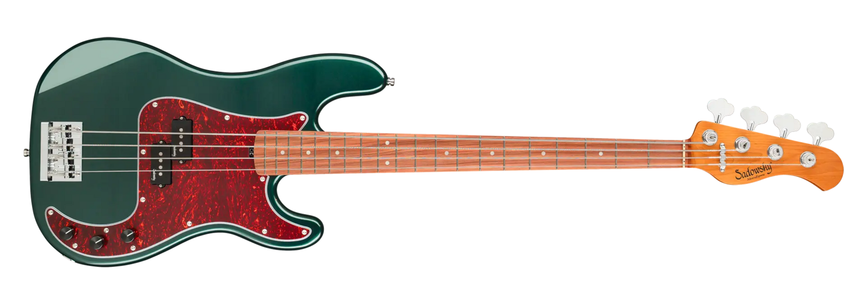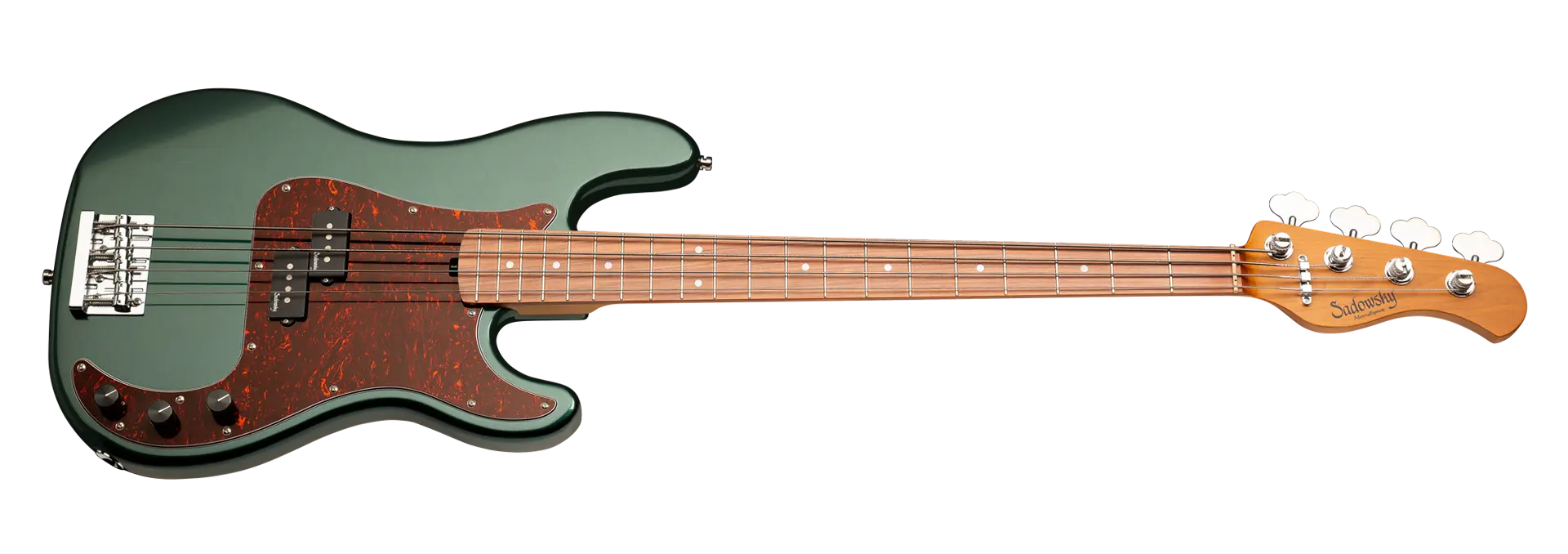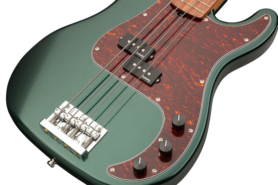 Roger Sadowsky’s goal has always been to improve on bass design by making some very unique and important enhancements. Through the use of his proprietary special electronics, light-weight tuners and selected tone wood, Roger has raised this MetroExpress 20-Fret Ultra Vintage P Bass to a whole other level! Features include a light-weight solid Okoume body finished in Solid Sherwood Green Metallic High Polish with a tortoise pickguard, a roasted maple neck and a morado fingerboard, this is one fantastic looking and playing bass that we are sure you will love to play! Our MetroExpress basses are the easiest way for you to access that famous Sadowsky tone: Never harsh or shrill sounding, with strong, powerful but never muddy bass, with present, but not too aggressive mids, and a sweet, airy treble.