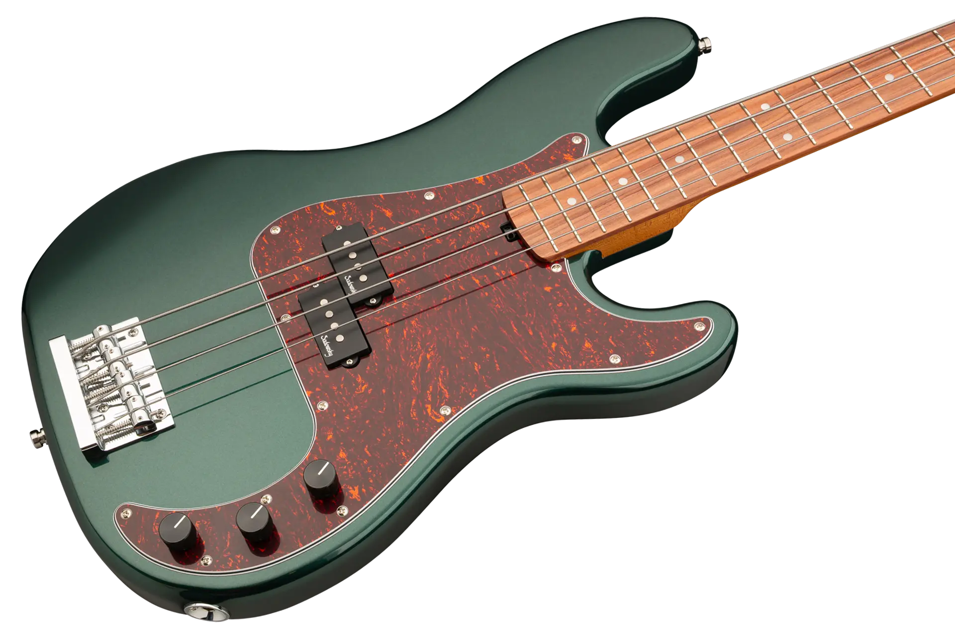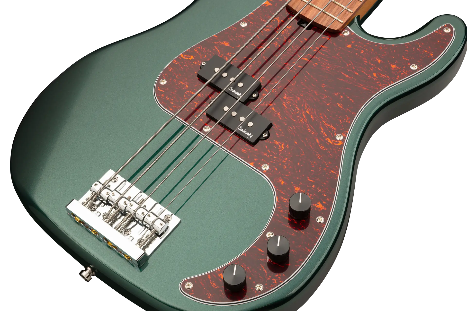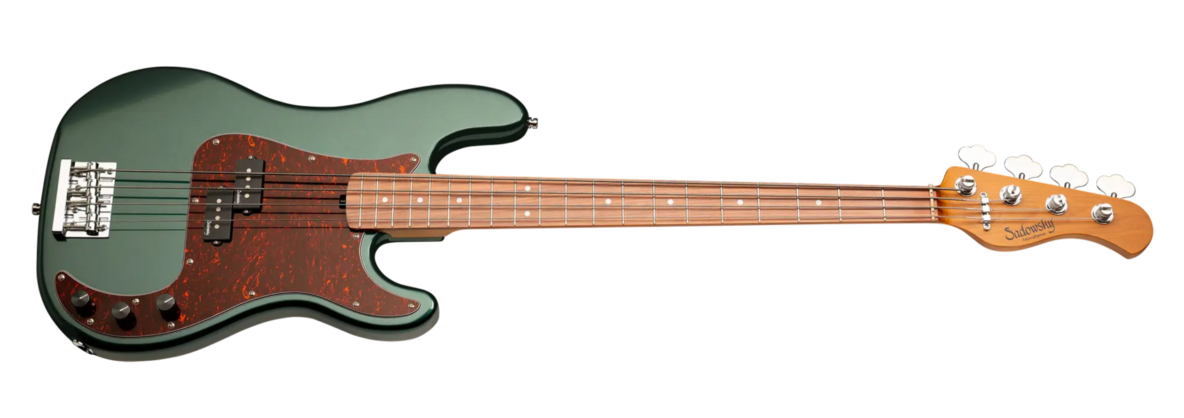 Roger Sadowsky’s goal has always been to improve on bass design by making some very unique and important enhancements. Through the use of his proprietary special electronics, light-weight tuners and selected tone wood, Roger has raised this MetroExpress 20-Fret Ultra Vintage P Bass to a whole other level! Features include a light-weight solid Okoume body finished in Solid Sherwood Green Metallic High Polish with a tortoise pickguard, a roasted maple neck and a morado fingerboard, this is one fantastic looking and playing bass that we are sure you will love to play! Our MetroExpress basses are the easiest way for you to access that famous Sadowsky tone: Never harsh or shrill sounding, with strong, powerful but never muddy bass, with present, but not too aggressive mids, and a sweet, airy treble.