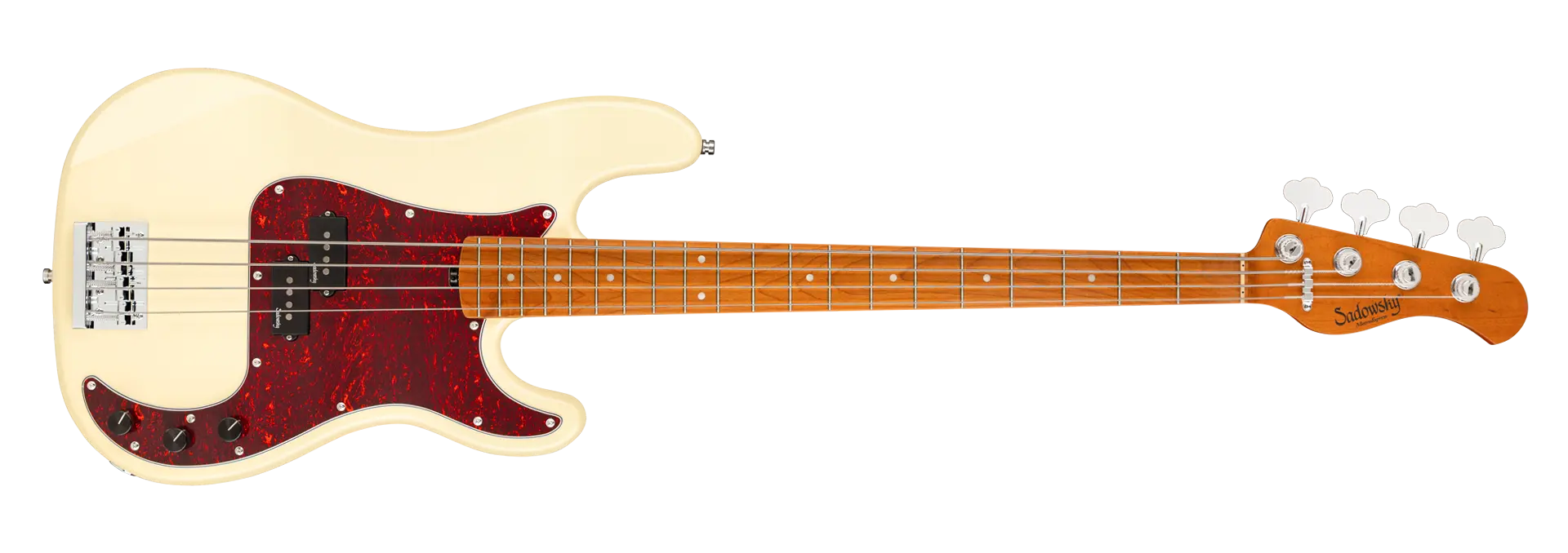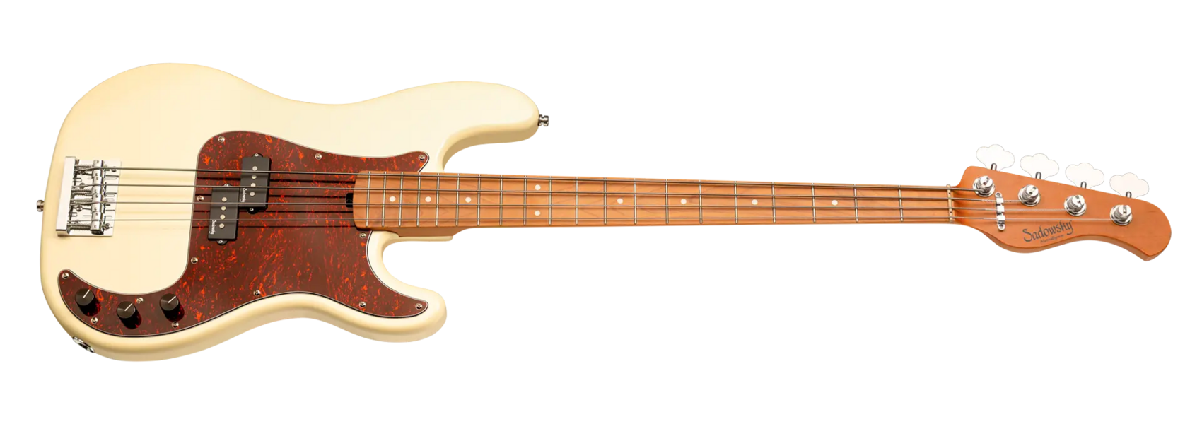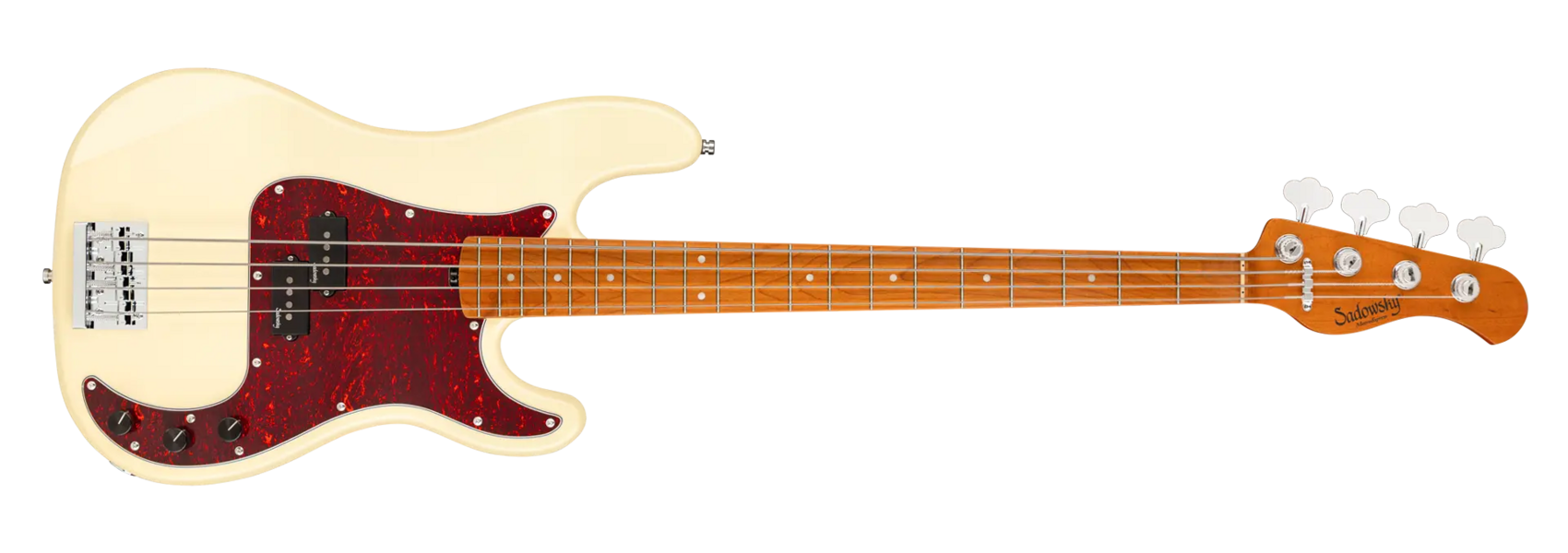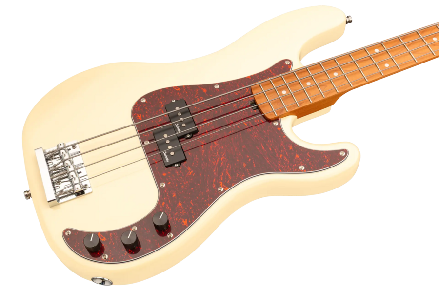 Roger Sadowsky’s goal has always been to improve on bass design by making some very unique and important enhancements. Through the use of his proprietary special electronics, light-weight tuners and selected tone wood, Roger has raised this MetroExpress 20-Fret Ultra Vintage P Bass to a whole other level! Features include a light-weight solid Okoume body finished in Solid Olympic White High Polish with a tortoise pickguard, a roasted maple neck and a roasted maple fingerboard, this is one fantastic looking and playing bass that we are sure you will love to play! Our MetroExpress basses are the easiest way for you to access that famous Sadowsky tone: Never harsh or shrill sounding, with strong, powerful but never muddy bass, with present, but not too aggressive mids, and a sweet, airy treble.