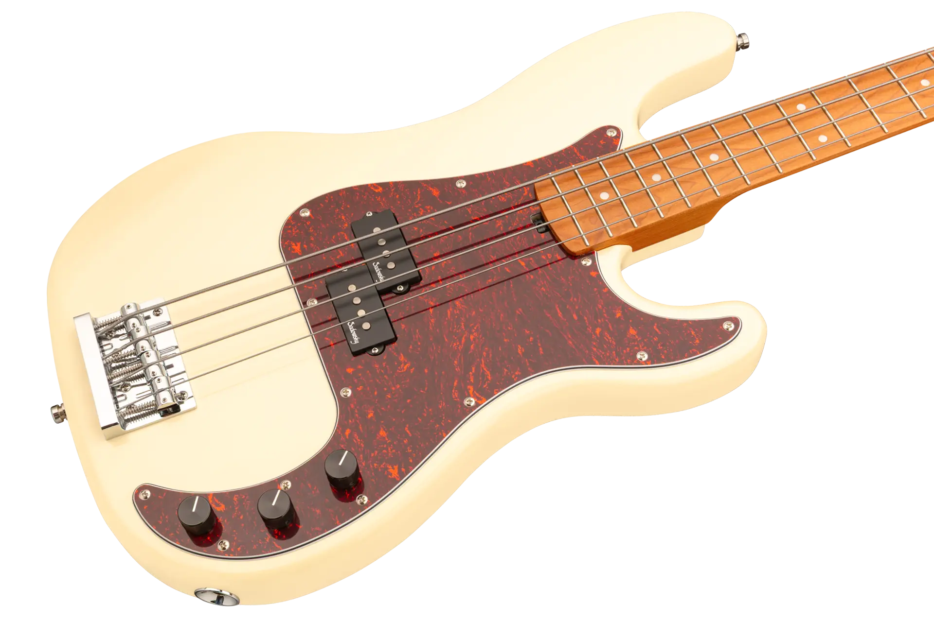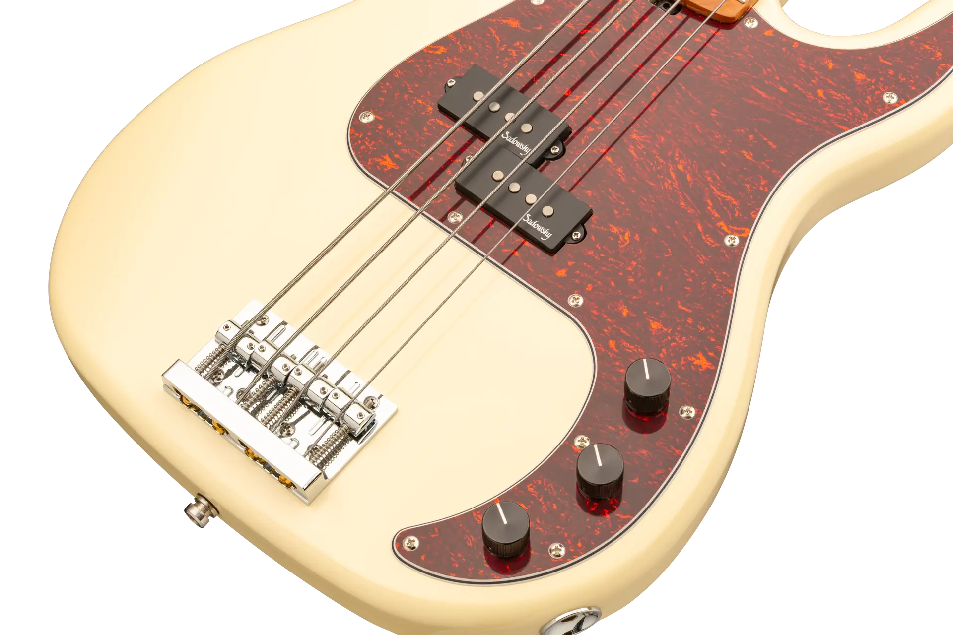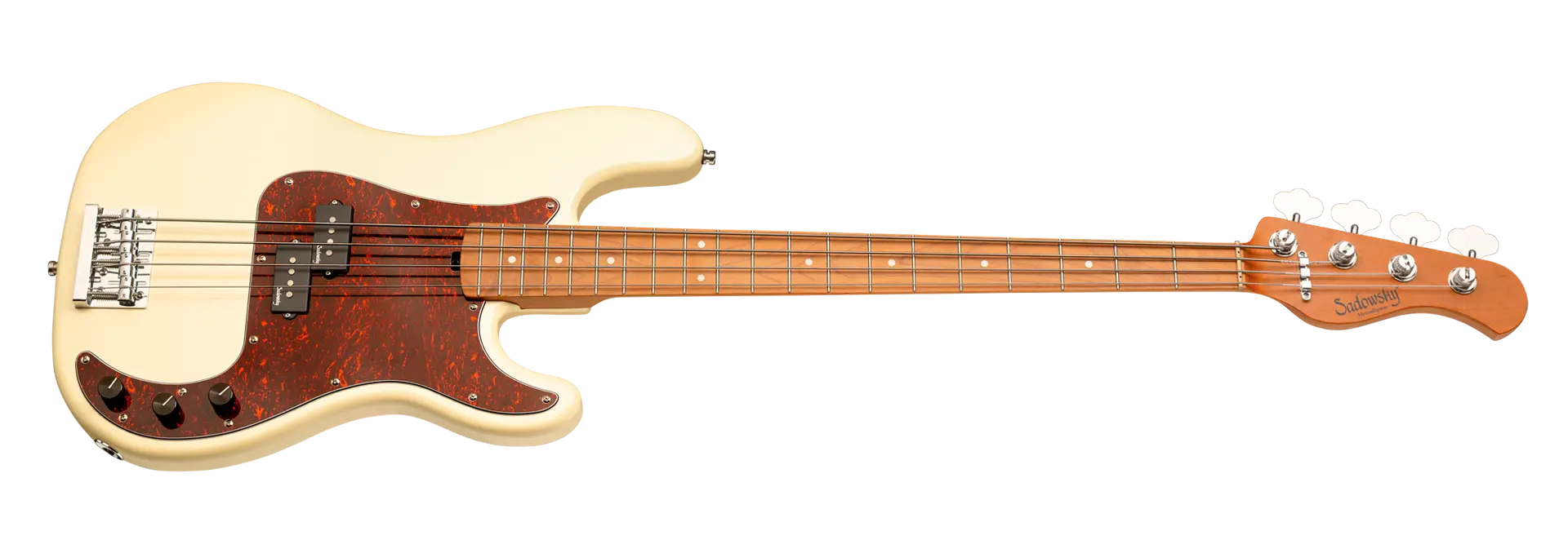 Roger Sadowsky’s goal has always been to improve on bass design by making some very unique and important enhancements. Through the use of his proprietary special electronics, light-weight tuners and selected tone wood, Roger has raised this MetroExpress 20-Fret Ultra Vintage P Bass to a whole other level! Features include a light-weight solid Okoume body finished in Solid Olympic White High Polish with a tortoise pickguard, a roasted maple neck and a roasted maple fingerboard, this is one fantastic looking and playing bass that we are sure you will love to play! Our MetroExpress basses are the easiest way for you to access that famous Sadowsky tone: Never harsh or shrill sounding, with strong, powerful but never muddy bass, with present, but not too aggressive mids, and a sweet, airy treble.