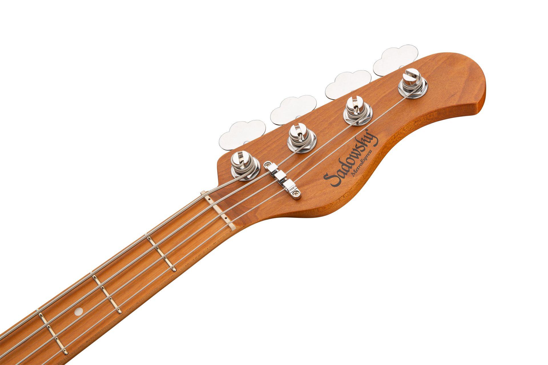 Roger Sadowsky has always improved bass design by making some very unique and important enhancements. Thanks to his proprietary special electronics, light-weight tuners and selected tone wood, Roger offers you the Sadowsky MetroExpress 24-Fret Modern 4-String Bass, an instrument at home both on stage and at home. Features include a light-weight solid Okoume body fitted with Soapbar pickups, a Solid Silver Metallic High Polish finish, a roasted maple neck and a roasted maple fingerboard. Together this makes one formidable bass that you are going to love to play! Best of all, the accessible price gives you access to that famous Sadowsky tone: Never harsh or shrill sounding, with strong, powerful but never muddy bass, with present, but not too aggressive mids, and a sweet, airy treble.