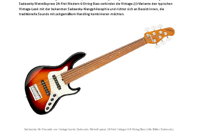 Roger Sadowsky has always improved bass design by making some very unique and important enhancements. Thanks to his proprietary special electronics, light-weight tuners and selected tone wood, Roger offers you the Sadowsky MetroExpress 24-Fret Vintage J/J 6-String Bass, an instrument at home both on stage and at home. Features include a light-weight solid Okoume body fitted with J/J pickups, finished in Solid Silver Metallic High Polish with a black pearloid pickguard, a roasted maple neck and a morado fingerboard. Together this makes one formidable bass that you are going to love to play! Best of all, the accessible price gives you access to that famous Sadowsky tone: Never harsh or shrill sounding, with strong, powerful but never muddy bass, with present, but not too aggressive mids, and a sweet, airy treble.