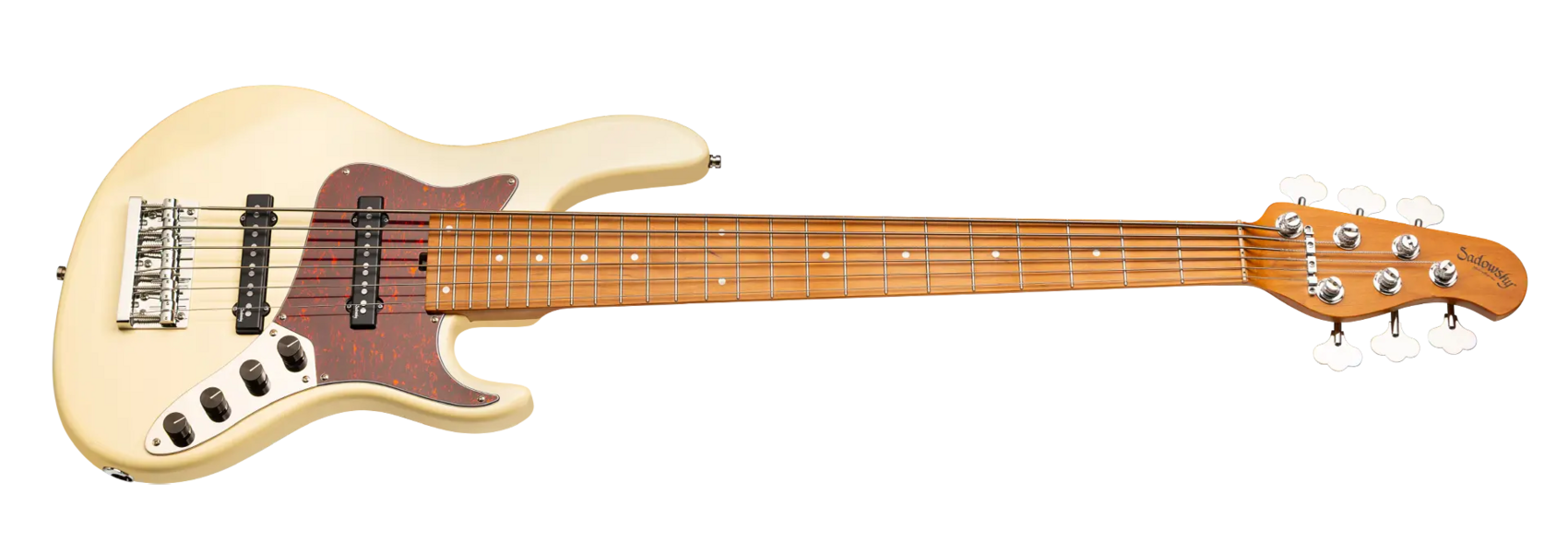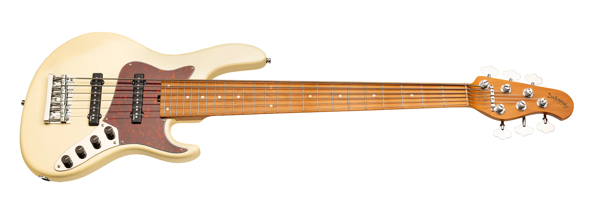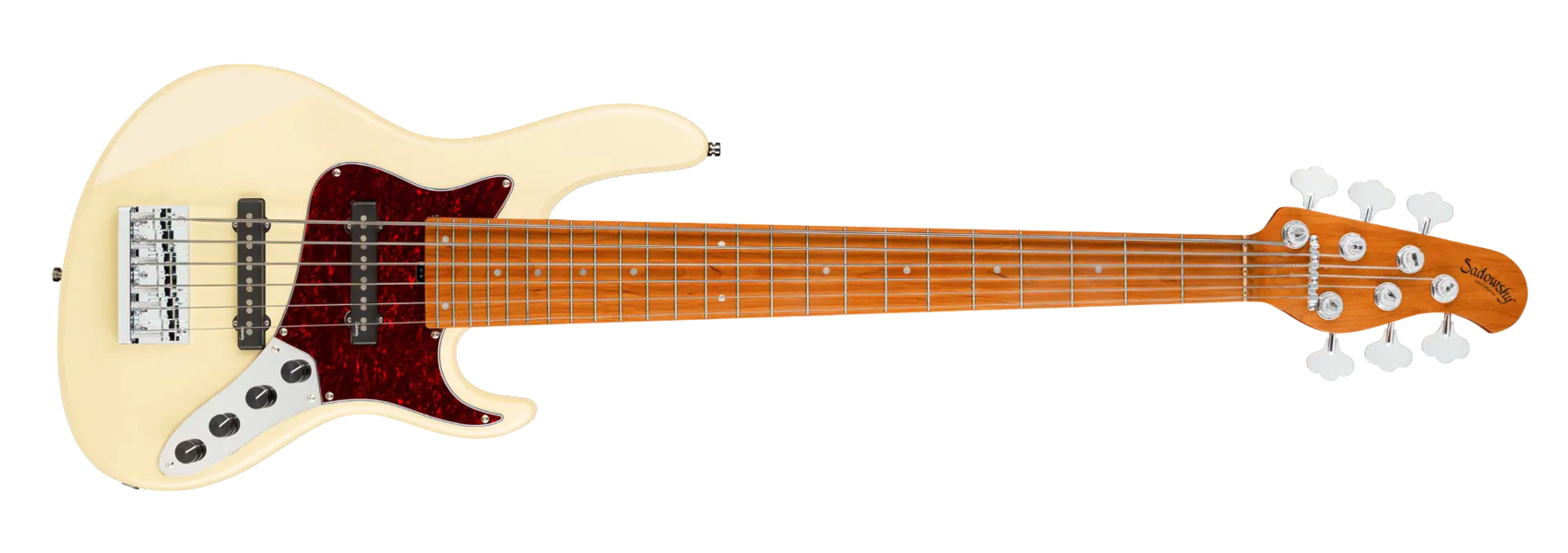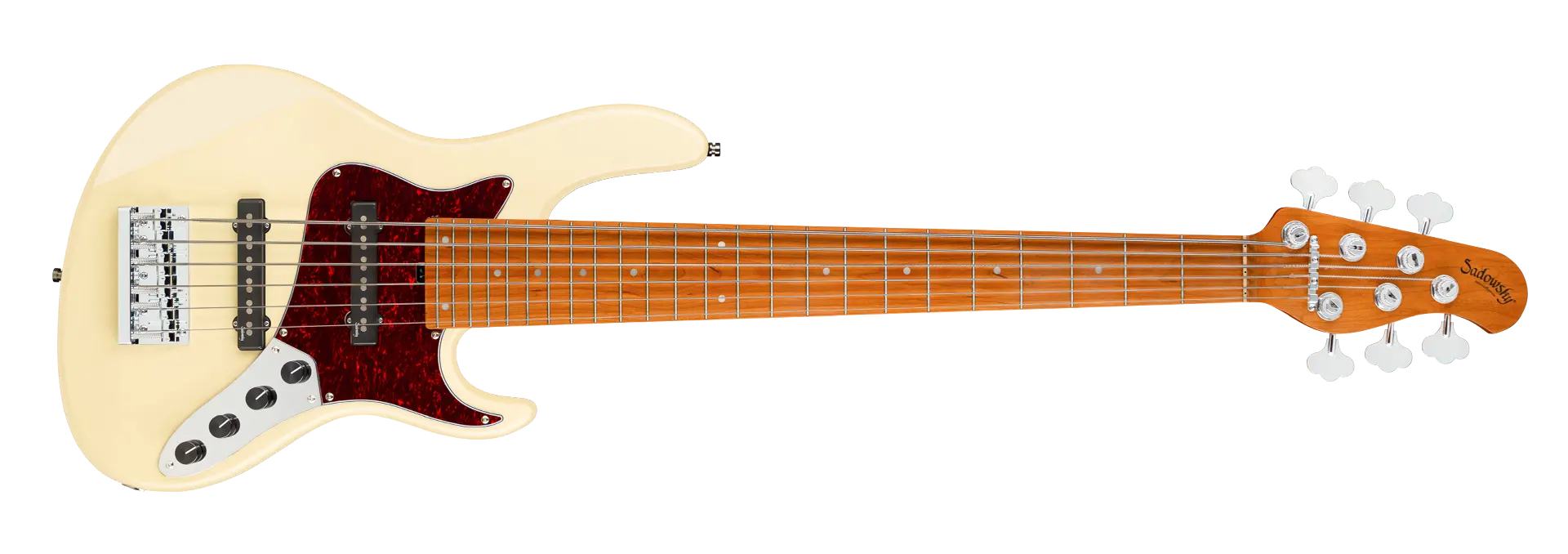 Roger Sadowsky has always improved bass design by making some very unique and important enhancements. Thanks to his proprietary special electronics, light-weight tuners and selected tone wood, Roger offers you the Sadowsky MetroExpress 24-Fret Vintage J/J 6-String Bass, an instrument at home both on stage and at home. Features include a light-weight solid Okoume body fitted with J/J pickups, finished in Solid Olympic White High Polish with a tortoise pickguard, a roasted maple neck and a roasted maple fingerboard. Together this makes one formidable bass that you are going to love to play! Best of all, the accessible price gives you access to that famous Sadowsky tone: Never harsh or shrill sounding, with strong, powerful but never muddy bass, with present, but not too aggressive mids, and a sweet, airy treble.