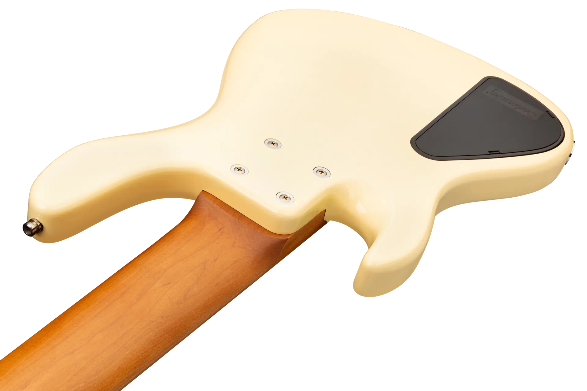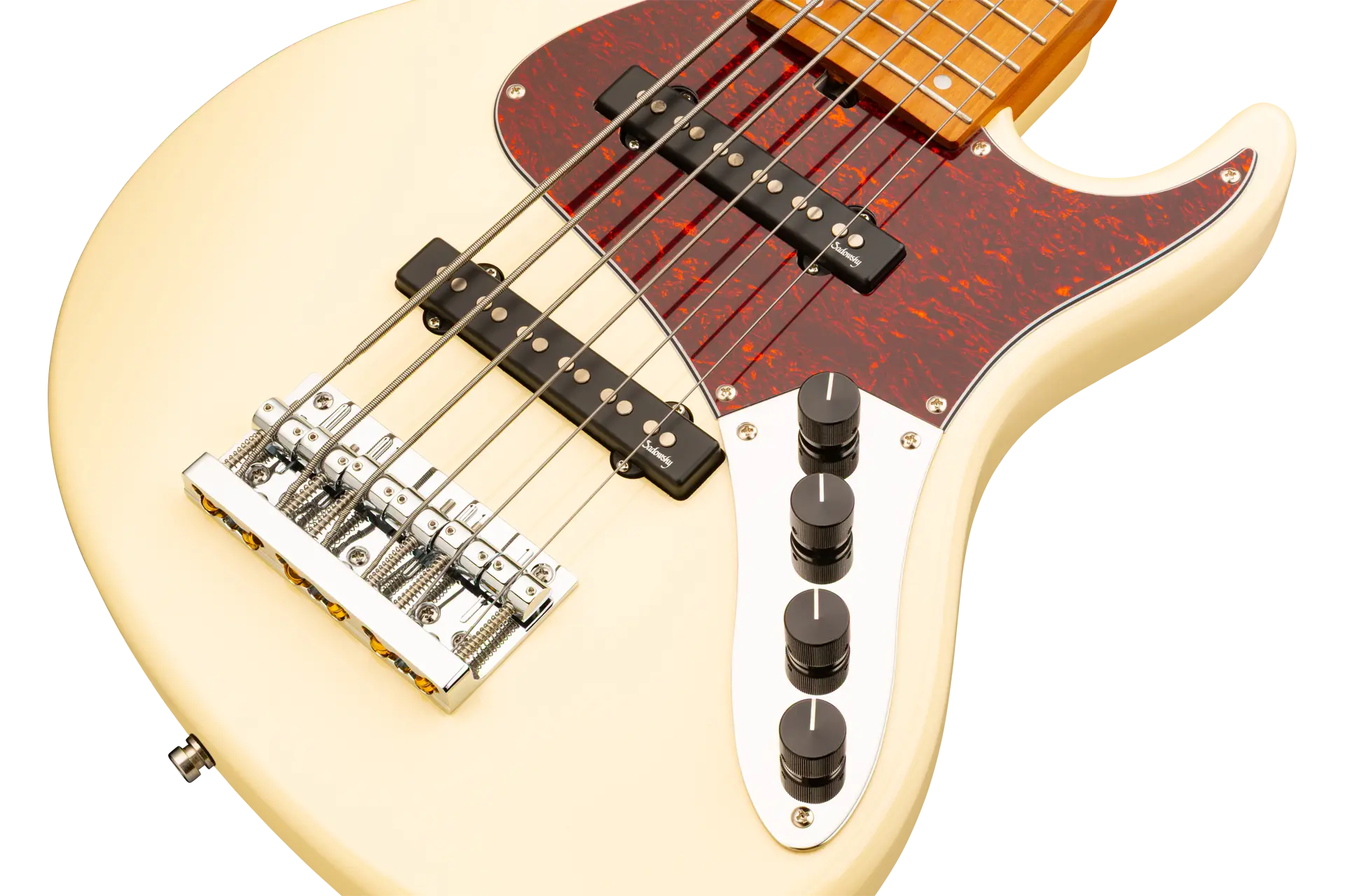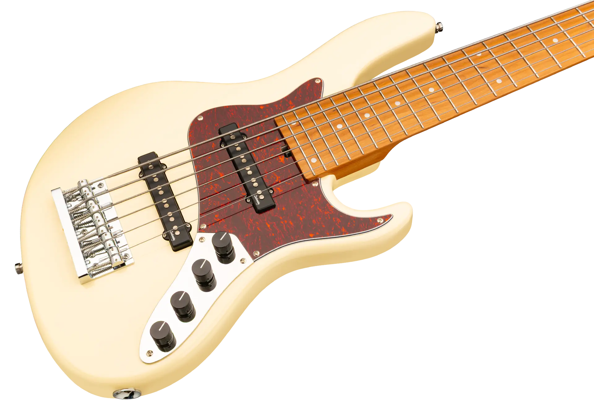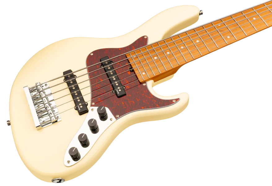 Roger Sadowsky has always improved bass design by making some very unique and important enhancements. Thanks to his proprietary special electronics, light-weight tuners and selected tone wood, Roger offers you the Sadowsky MetroExpress 24-Fret Vintage J/J 6-String Bass, an instrument at home both on stage and at home. Features include a light-weight solid Okoume body fitted with J/J pickups, finished in Solid Olympic White High Polish with a tortoise pickguard, a roasted maple neck and a roasted maple fingerboard. Together this makes one formidable bass that you are going to love to play! Best of all, the accessible price gives you access to that famous Sadowsky tone: Never harsh or shrill sounding, with strong, powerful but never muddy bass, with present, but not too aggressive mids, and a sweet, airy treble.