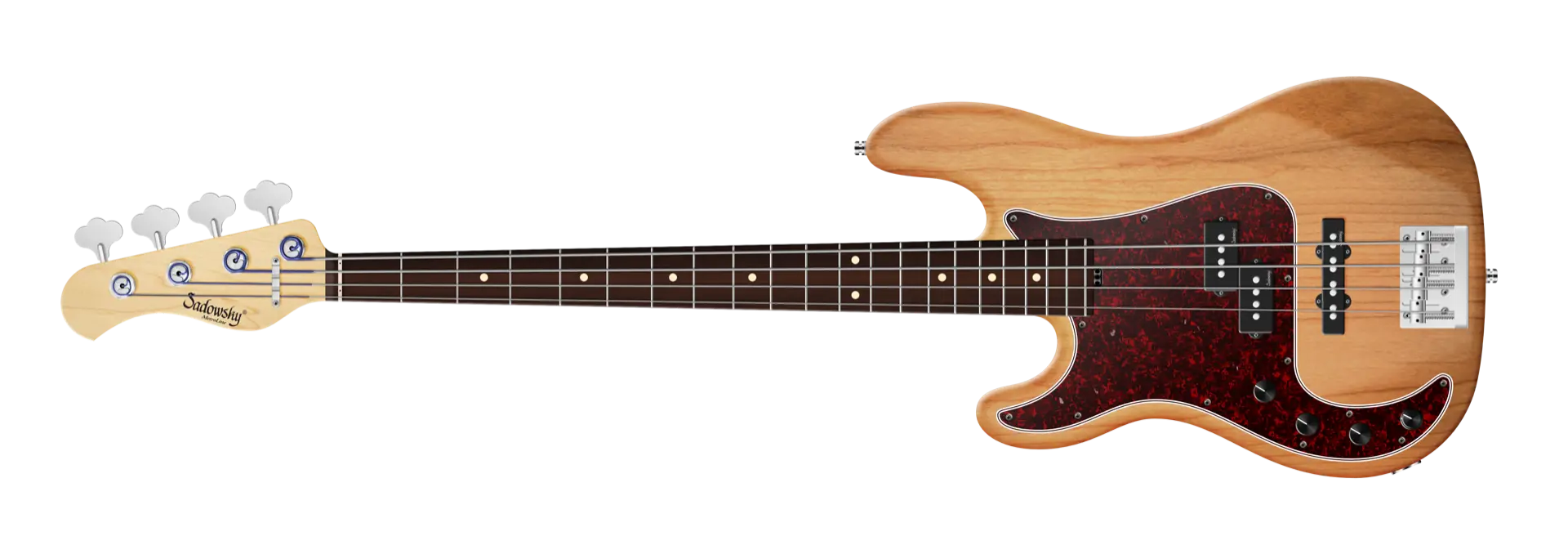 Roger Sadowsky's goal was always to further improve an already very successful bass design by making a number of detailed improvements. Along with the electronics, which he developed by himself, he succeeded to raise the well-known P/J bass sound to a new level, so today you can speak of a typical Sadowsky tone: Never harsh or shrill sounding, with strong, powerful but never muddy bass, with present, but not too aggressive mids, and a sweet and airy treble range. This modern bass sound can also be found in the Sadowsky MetroLine 21-Fret Hybrid P/J line of basses. This 4-string left-hand bass, seen here in a Natural Transparent Satin finish, features a chambered P-Style body made of American Red Alder. The neck is made of Maple and features a Morado (Pau Ferro) fingerboard. Special features of this bass include Sadowsky P and J pickups, active electronics with true bypass, Vintage Tone Control, treble and bass boost. This bass also features light open gear Sadowsky tuners and the Sadowsky Quick String Release Bridge. Sadowsky MetroLine 21-Fret Hybrid P/J basses are made exclusively in Germany. The weight of this bass is never more than 8.9 lbs (4.0 kg). A good choice for players who want a lightweight bass that offers a modern bass sound.